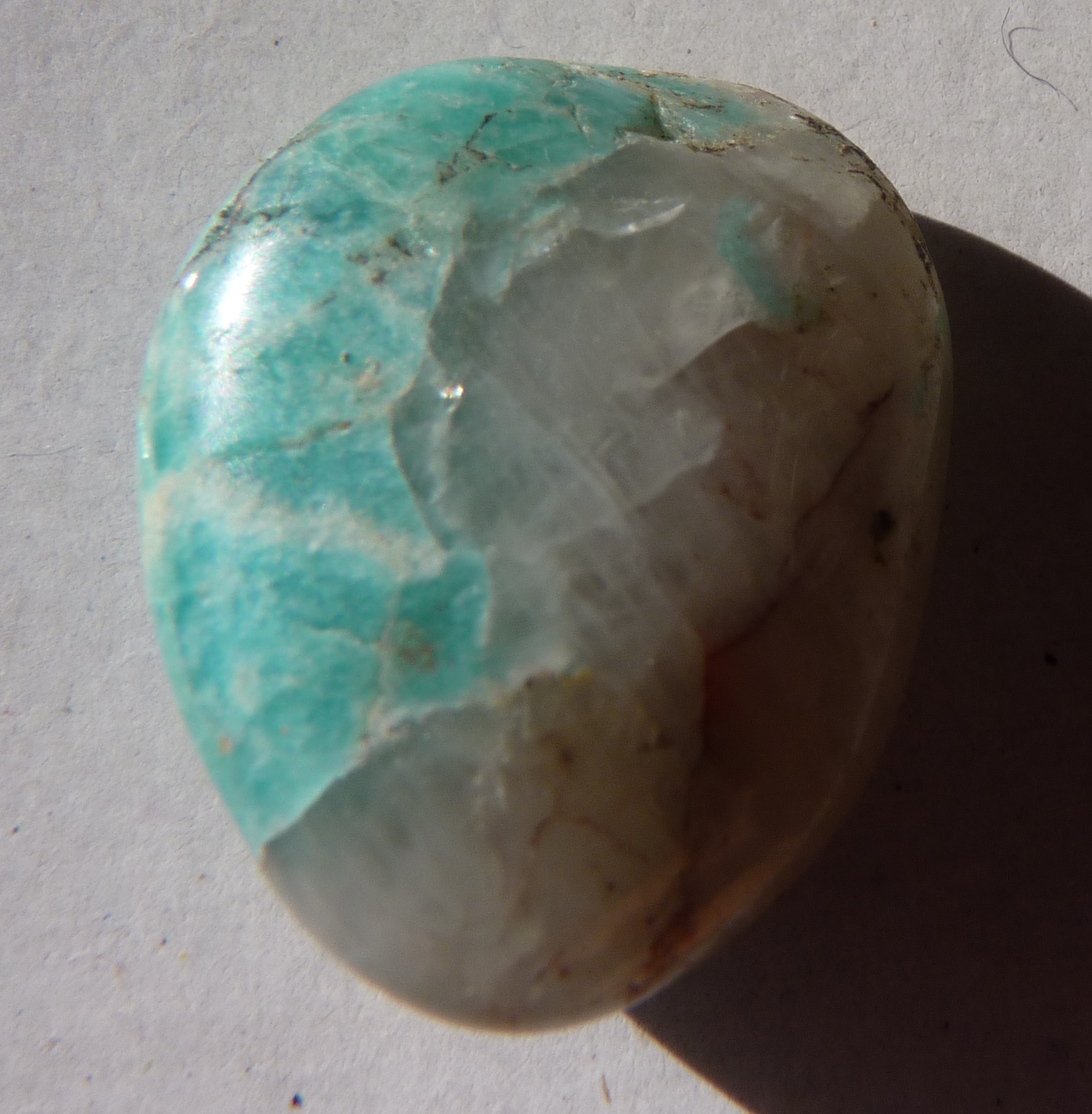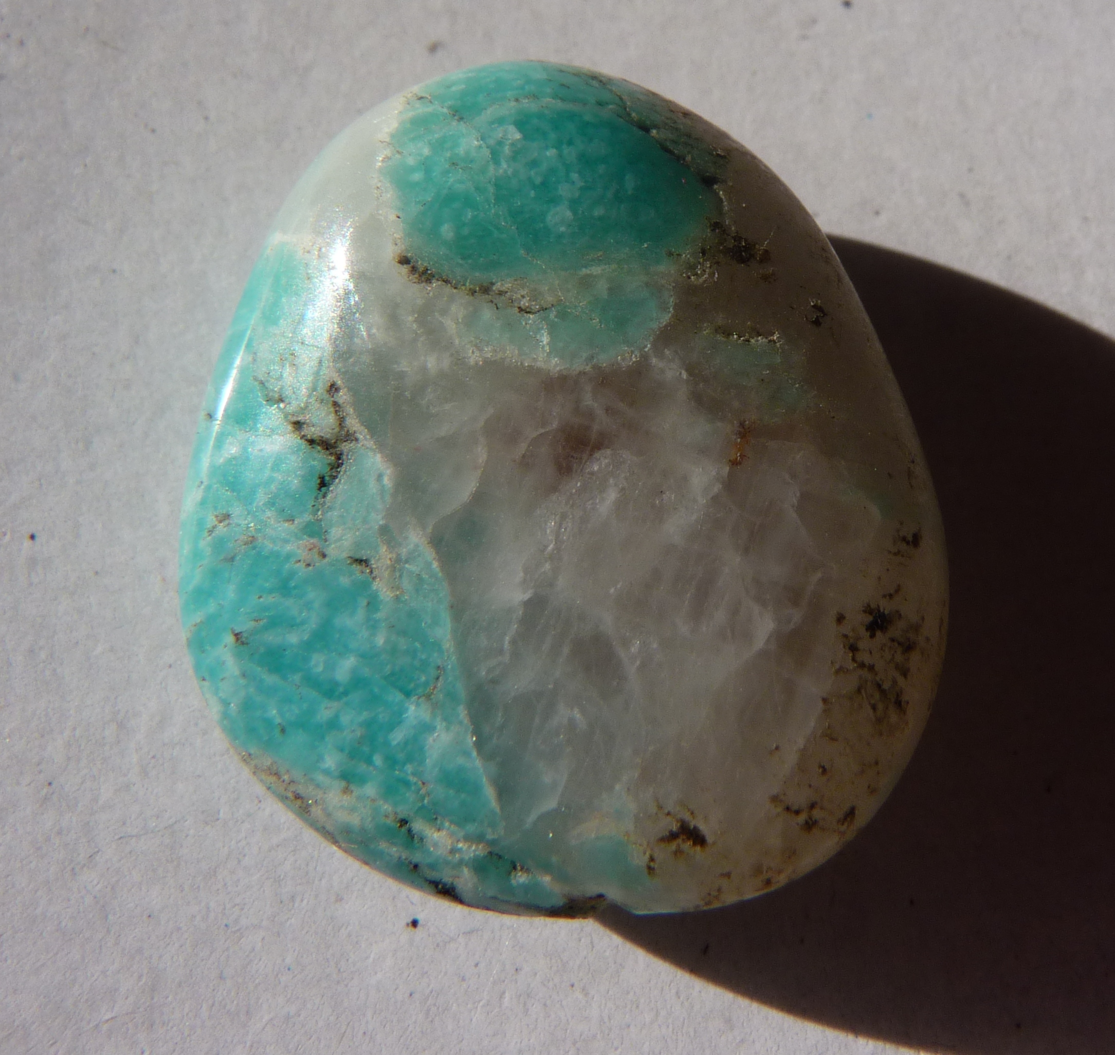 Der bläuliche Anteil ist bei meinen Steinen schwach bis gut durchscheinend.