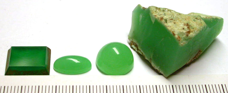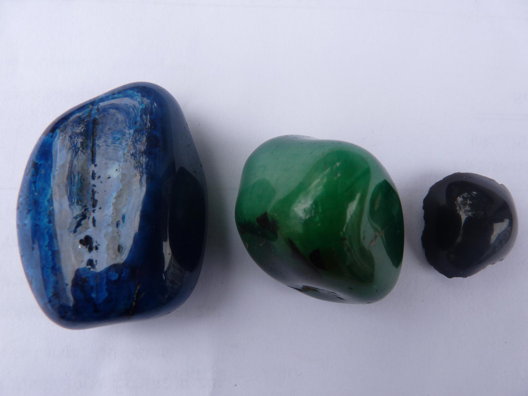 Als Vergleich noch ein paar Chrysoprase, einer davon ist ein Glasstein.