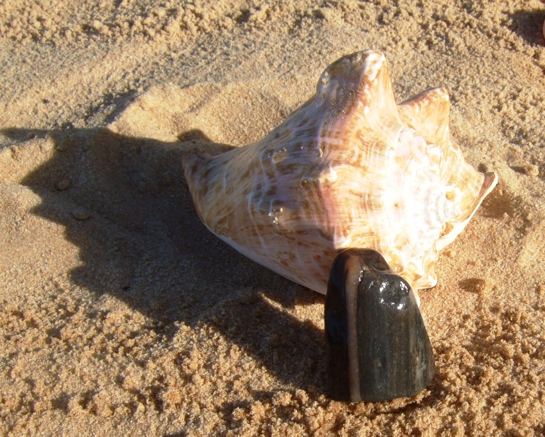 Paradis, kann man wohl sagen. Die Schnecke ist ein Geschenk von meinen Nachbarn, sind alles Fischer. In den anderen Beiträgen (z.B. Nr.1 od.4), seht ihr die Fundstelle, direkt vor meiner Haustüre und die Düne bis zum Strand gehört auch zu unserem Sitio. (Sand ohne Ende und überall).