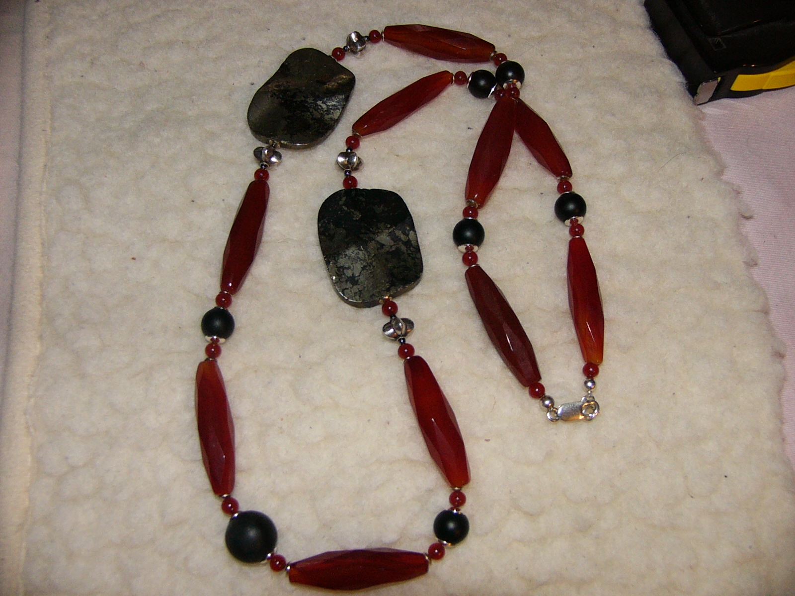 Mir war mal nach ketteln das ist daraus geworden lange Kette mit Pyrit Karneol Onyx und Silber Zwischenteile