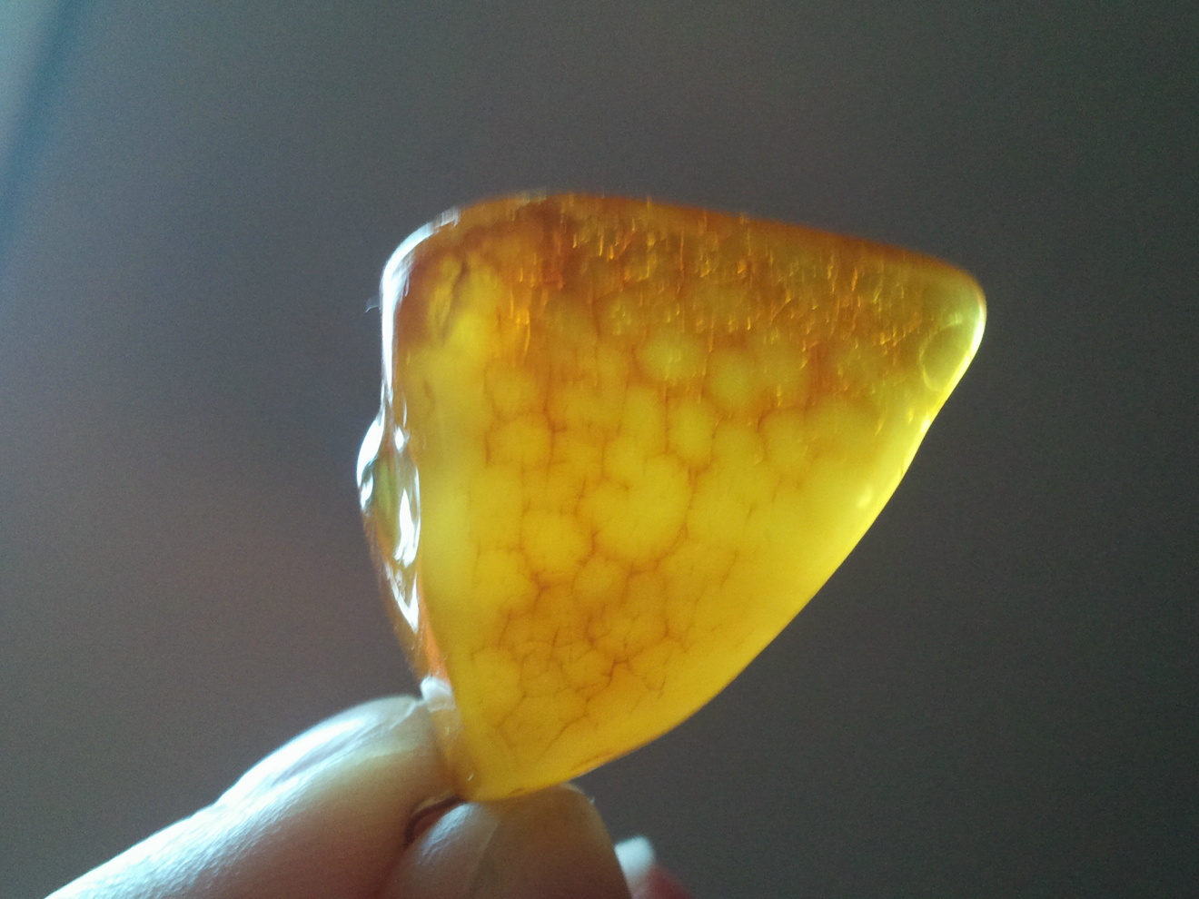 Mein Bernstein-Anhänger, der unbedingt zu mir wollte und den ich soooooo faszinierend und schön finde. Die Bilder werden seiner Schönheit überhaupt nicht gerecht. Er funkelt ständig wie die Sonne selbst, aber die Bilder geben das nur im Ansatz wieder. Diesen Anhänger trage ich an langem Lederband über der Kleidung, und wird dann auch oft in die Hand genommen, befühlt und betrachtet.