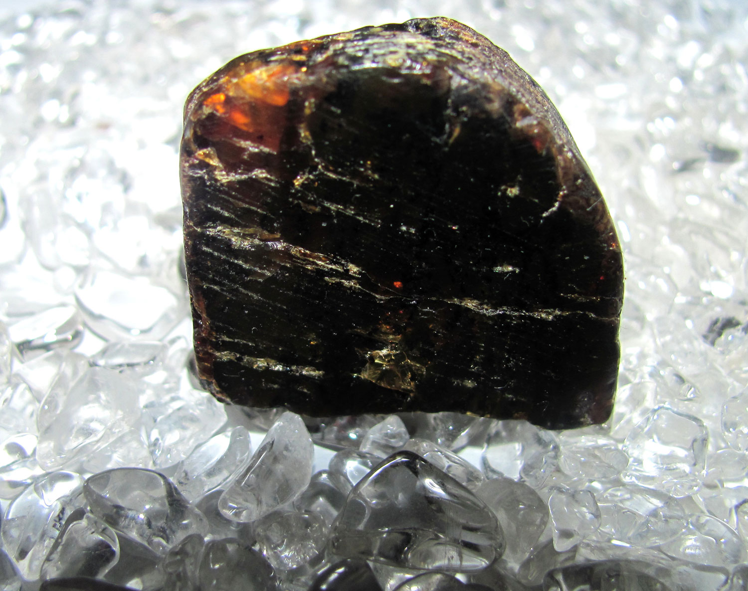 Schwarzer Bernstein ( teils fluoreszierend in Blau ) aus Borneo Sumatra / Miozän ca. 25 Millionen Jahre alt.