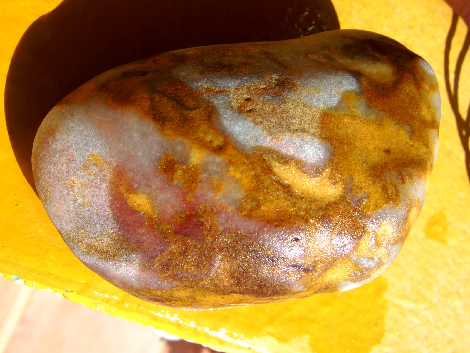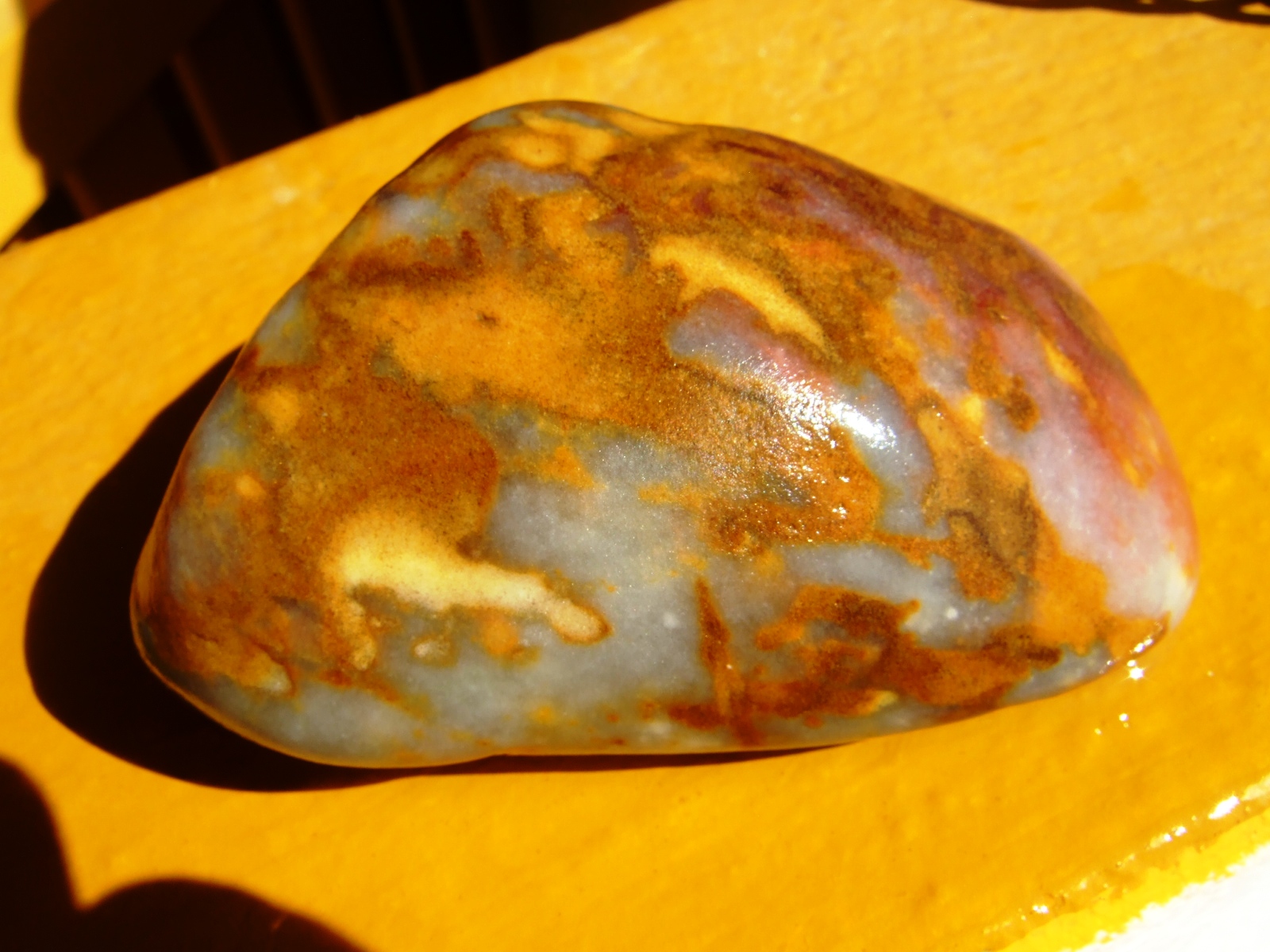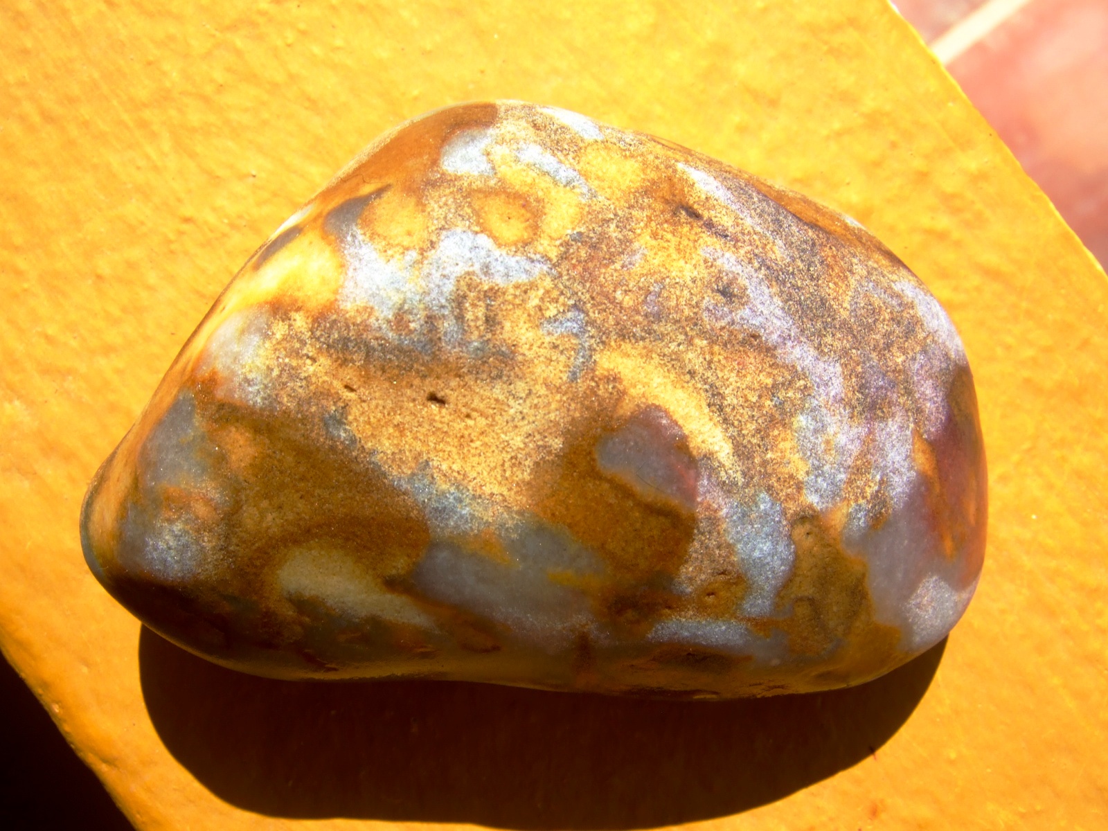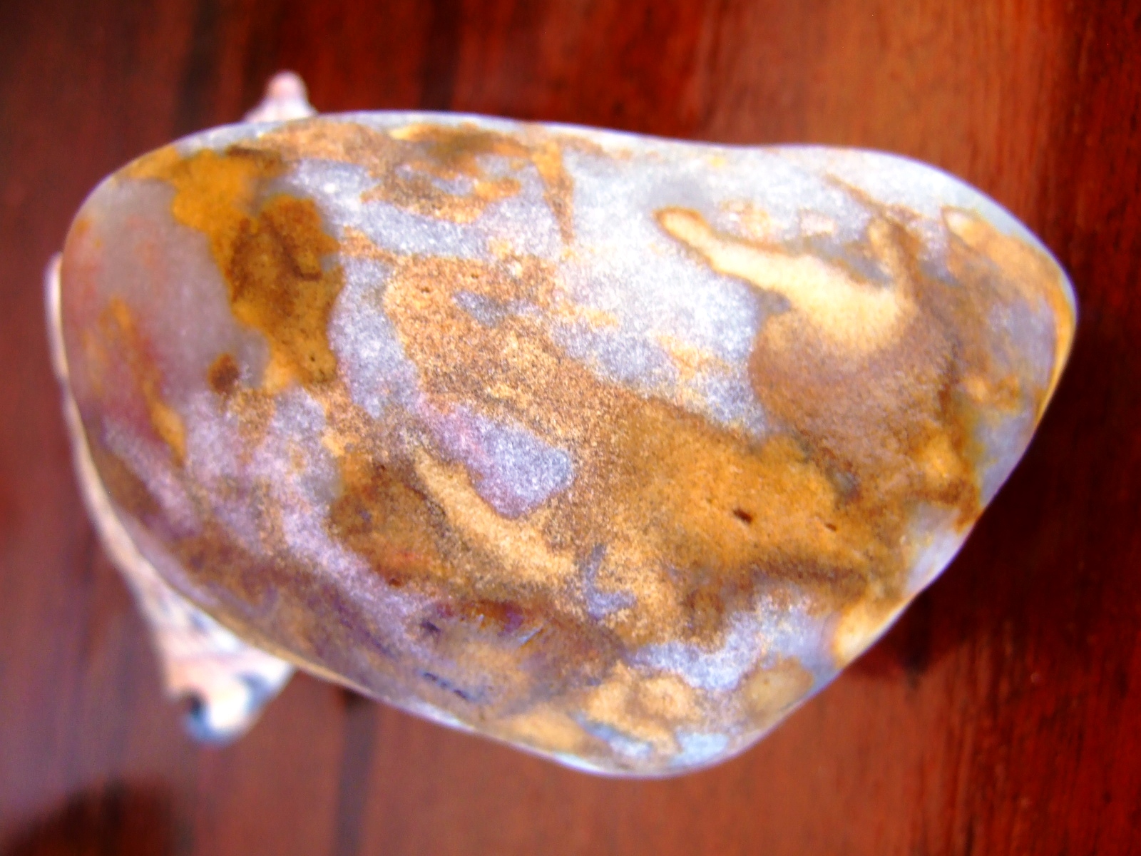 bei diesem Stein könnte es sich um eine Chalcedon mit Limonitverfärbung handeln aber