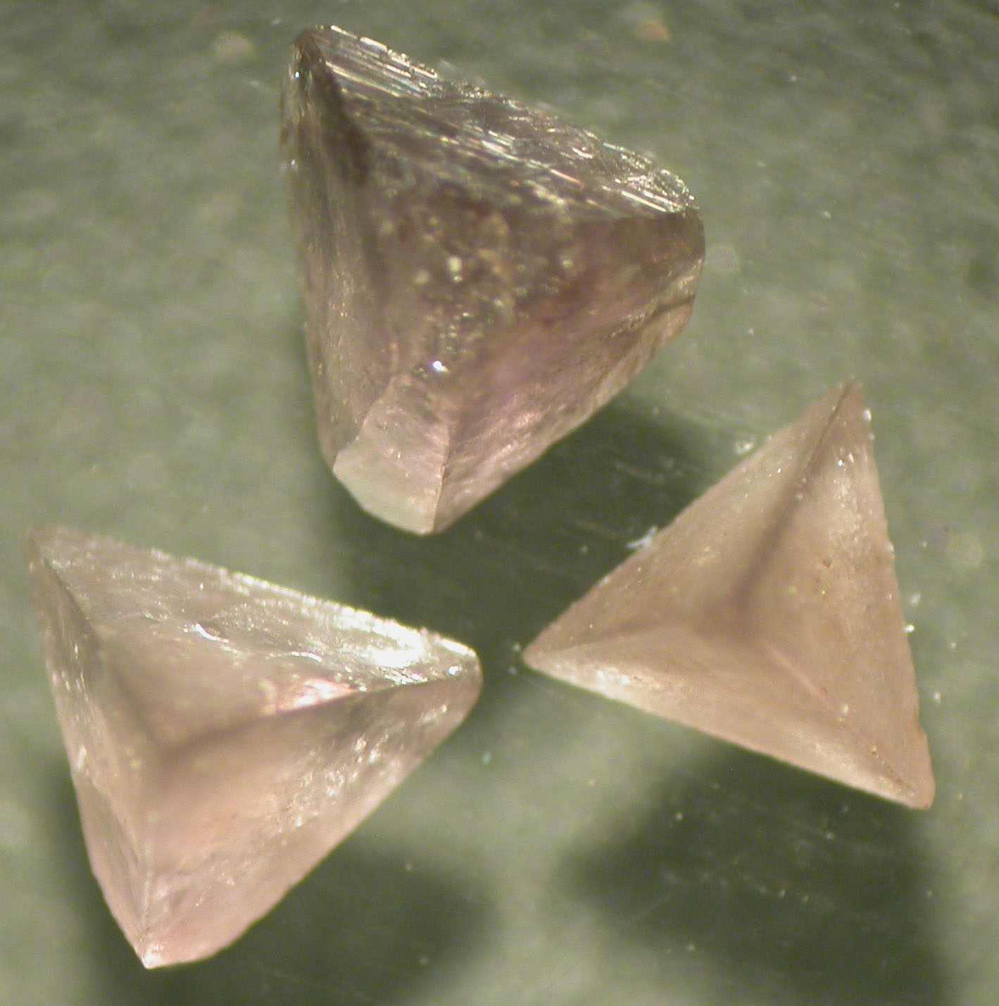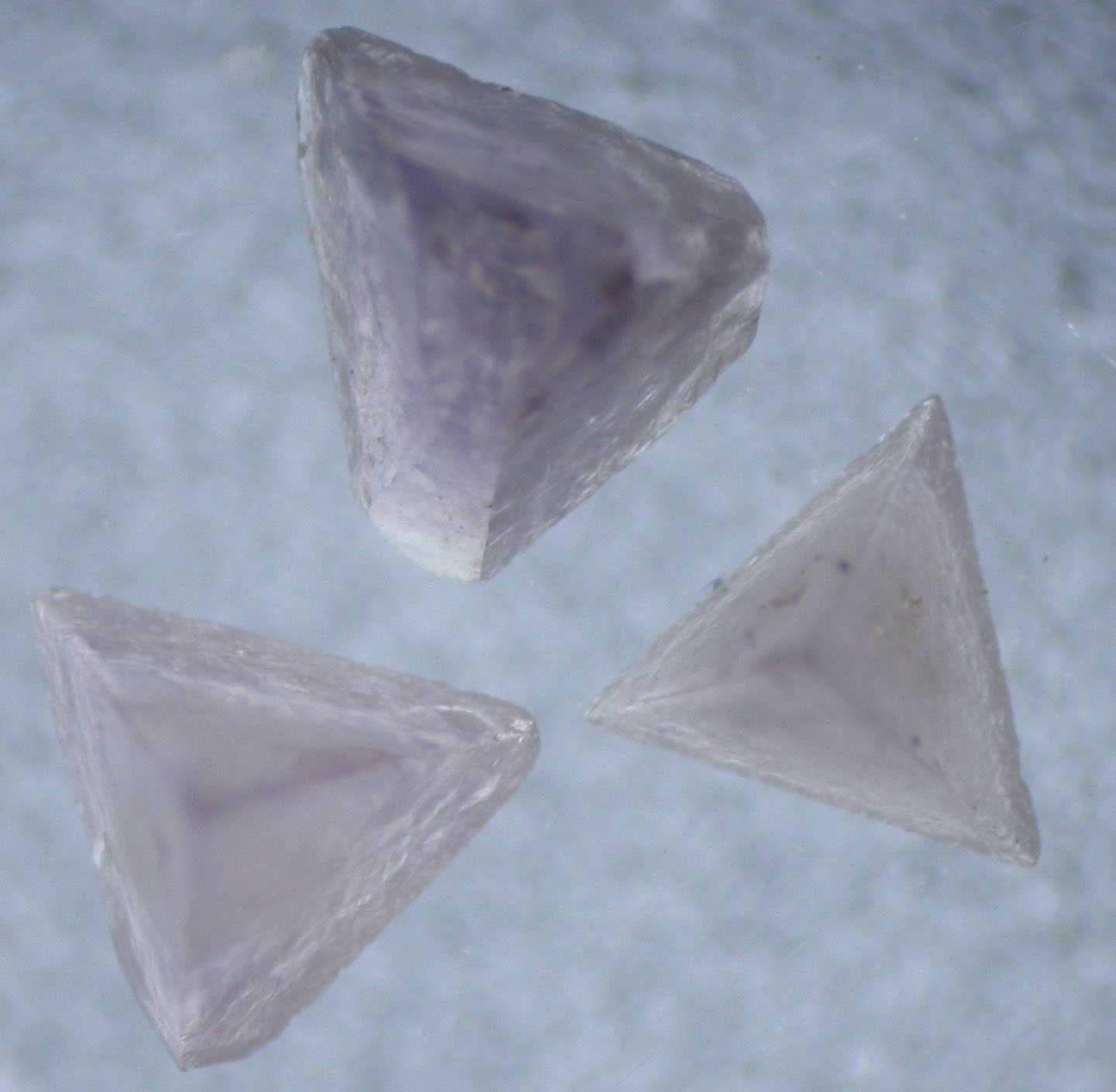 Ich habe da drei kleine Steinchen, schwach rosa-violett mit besonderer Kristallform....