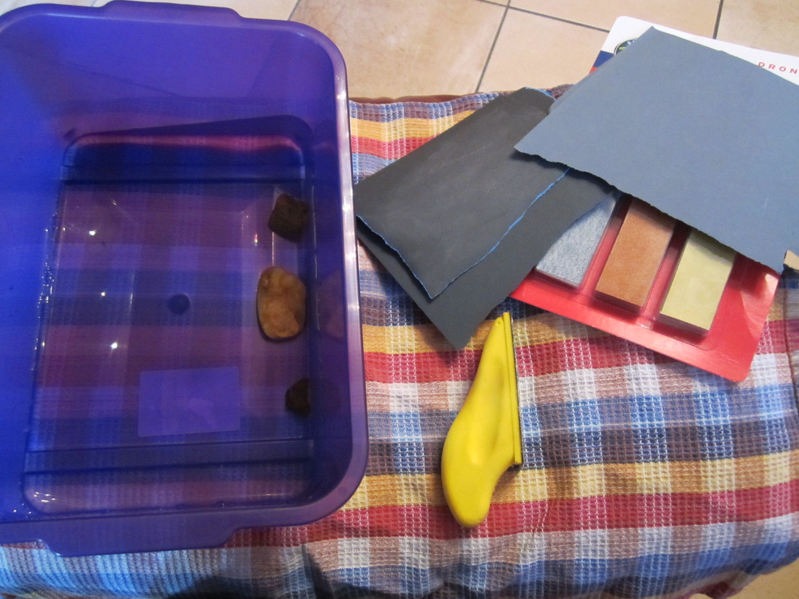Wichtig ist zwischendurch den Bernstein und das Papier immer wieder im Wasser zu säubern, sonst schleift man