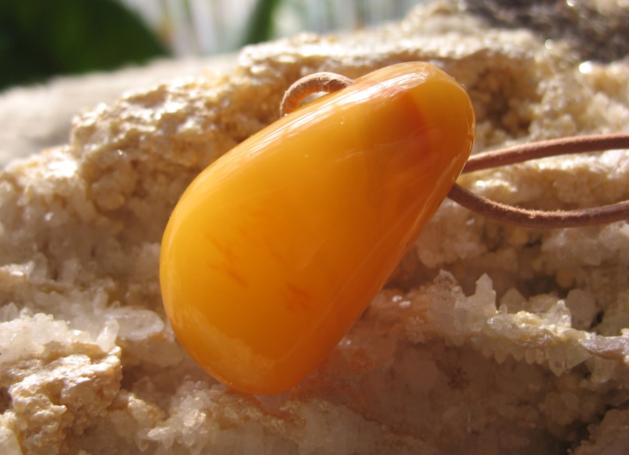 Ich hab den wunderschönen weißen Bernstein-Anhänger zum Hochzeitstag bekommen, von meinem Liebsten