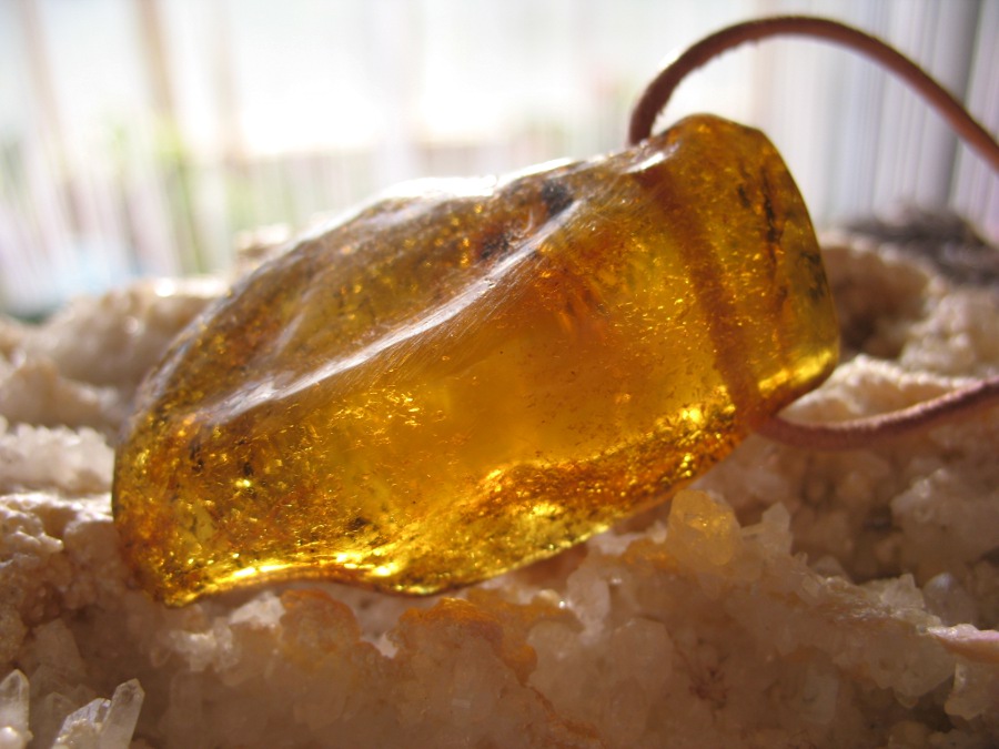 Ich hab den wunderschönen weißen Bernstein-Anhänger zum Hochzeitstag bekommen, von meinem Liebsten