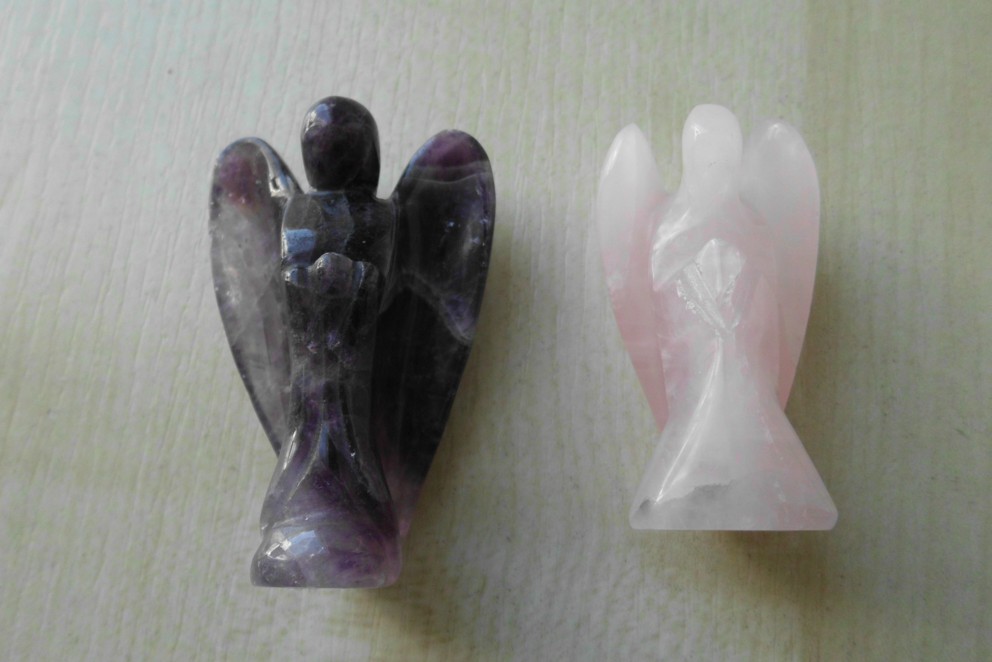 Der kleinere ist Rosenquarz, beim größeren bin ich mir nicht sicher, Amethyst oder Fluorit? ++´´ß