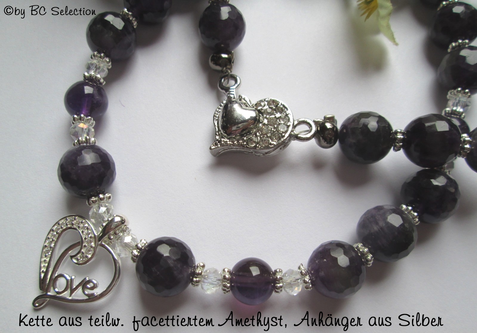 Leider sieht man auf den Fotos die Amethyste nicht gut, Amethyst lässt sich oft nicht richtig ablichten und erscheint dann eher schwarz. In Natura haben sie selbstverständlich ihre natürlich schöne lila Farbe und einen Facettenschliff.