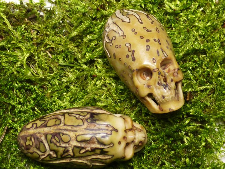 Und er sagte es sei erstmal meine Aufgabe Quarzhaltige Schädel aus allen Teilen der Welt, Kontinenten, Ländern zusammen zu bringen um mit ihnen zu arbeiten, sie mit einzusetzen für die Erde, Menschen, Tiere, Pflanzen, in Zeremonien oder einfach einzelne von ihnen mit zu nehmen. Mag sein dass man das als Einbildung abtun kann. Ich hab vorher auch nicht dran geglaubt, dass Steine mit mir sprechen, bis es geschah, aber es sprechen längst nicht alle mit mir. Und auch nicht immer. Kann ja auch sein dass es Anteile von mir sind die ich da höre, keine Ahnung. Die Namen erbitte ich, weil ich sie dann leichter ansprechen kann, es ist persönlicher, eigentlich brauchen sie keine Namen. Ich sehe sie als lebendig die Steine, sehe Wesenheiten. Ja und im Laufe der Zeit fanden sich dann bis jetzt insgesamt 80 Schädel bei mir zusammen, ausgewählt nach einiger Zeit auch wegen Schönheit der Kristalle und der Kunstfertigkeit der Carver. Kristallschädel aus allen Kontinenten hab ich jedenfalls dabei . Irgendwie packt einen genau wie bei Mineralen oder Trommlern dann die Leidenschaft, letzt kaufte ich uns zwei aus Rudraksha Samen, Tränen Shivas, einfach weil sie schön sind.