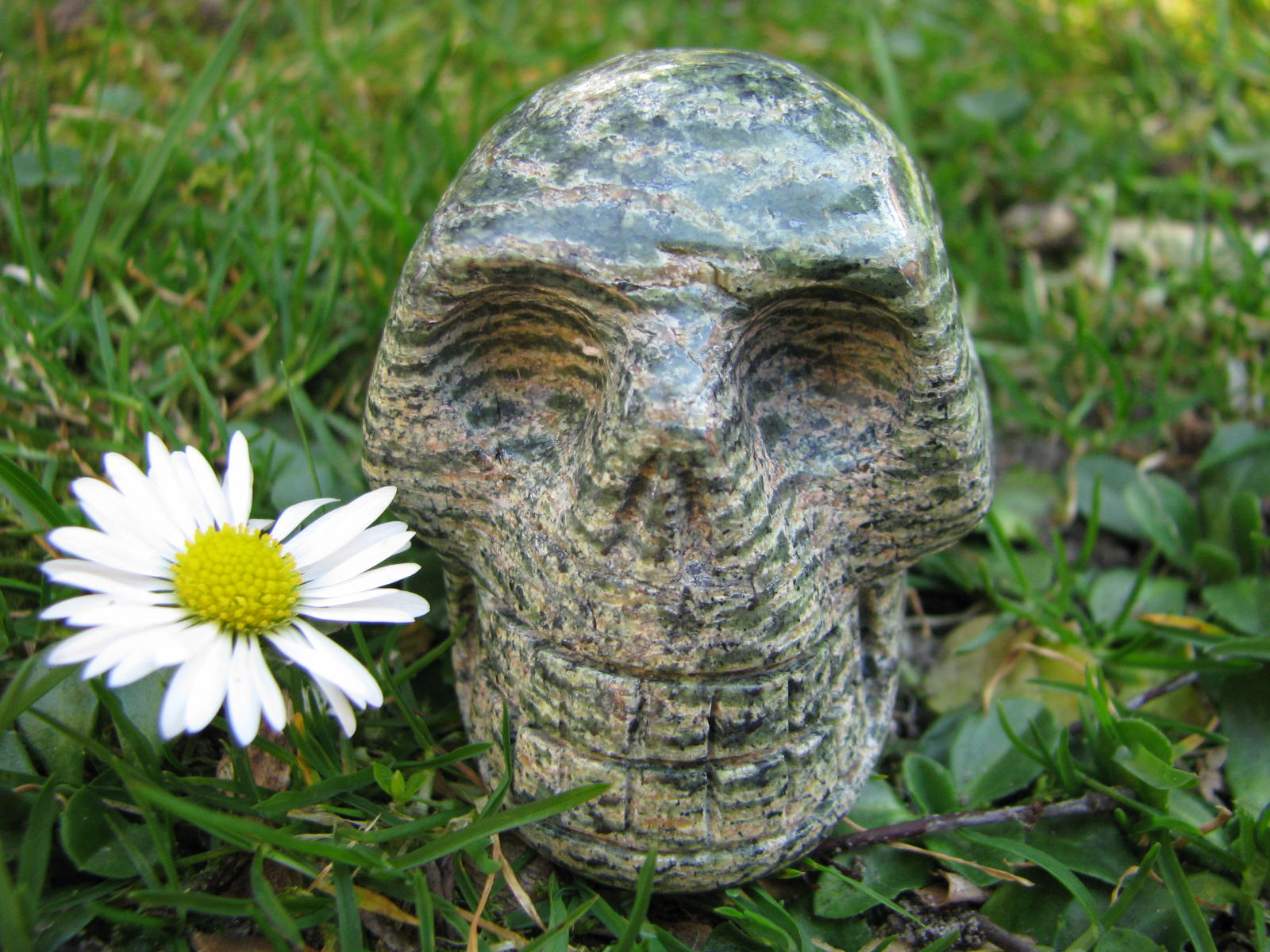 Jahre später traf ich bei der HH-Messe eine Freundin, die mir etwas später ihre Kristallschädel vorstellte und einer davon "sprach" mit mir. Das war der Beginn. Er wollte zu mir. Aber sie konnte ihn zu diesem Zeitpunkt nicht loslassen und so suchte ich nach einem passenden für mich. Und fand Wingstone, er nannte mir diesen Namen: