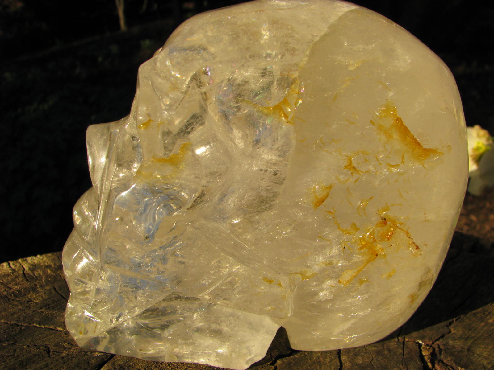 Jahre später traf ich bei der HH-Messe eine Freundin, die mir etwas später ihre Kristallschädel vorstellte und einer davon "sprach" mit mir. Das war der Beginn. Er wollte zu mir. Aber sie konnte ihn zu diesem Zeitpunkt nicht loslassen und so suchte ich nach einem passenden für mich. Und fand Wingstone, er nannte mir diesen Namen: