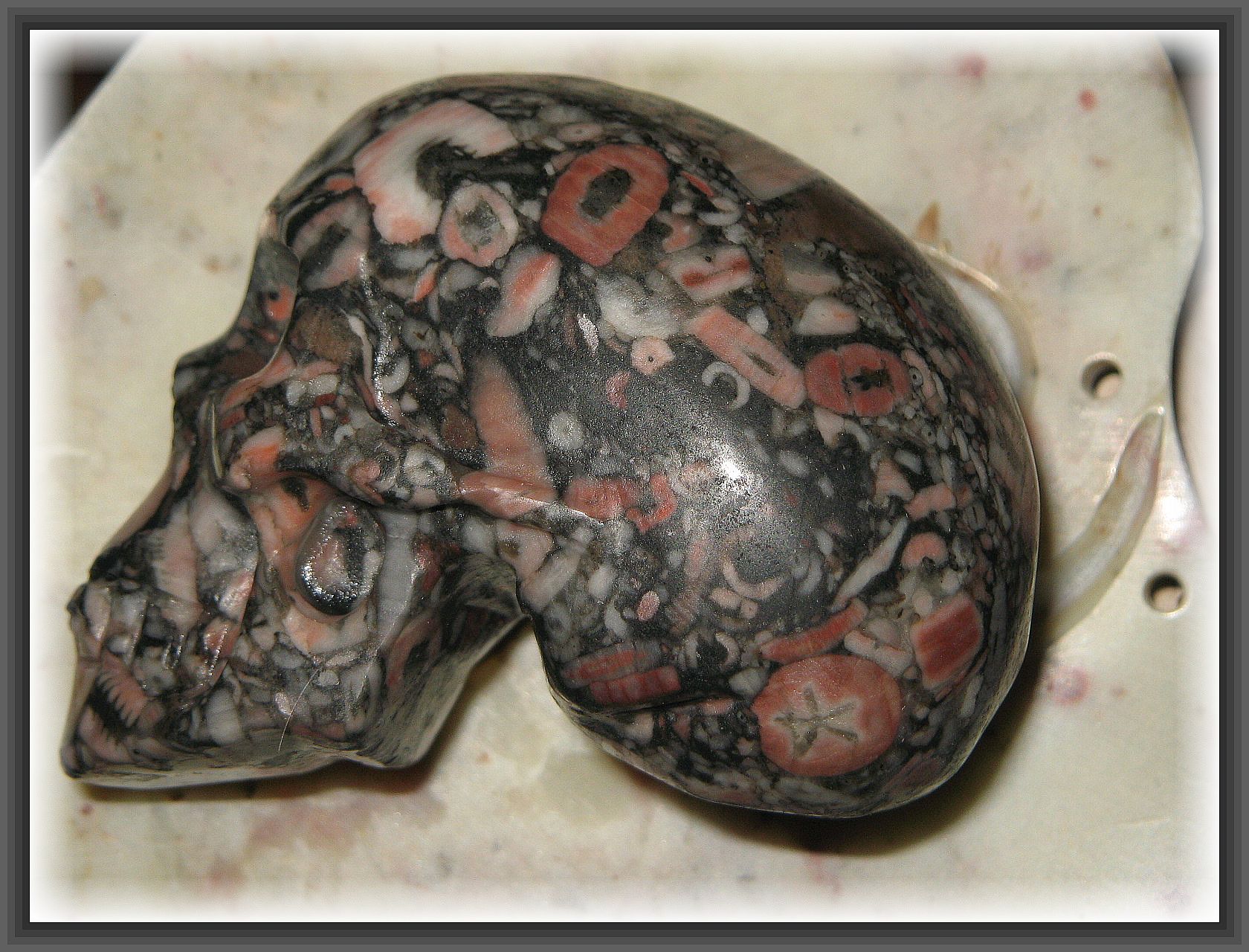 Dein Chalcedon-Schädel (hab mal auf dem Bild ge-moused) mit dem Limonit (?) sieht herrlich weich aus,