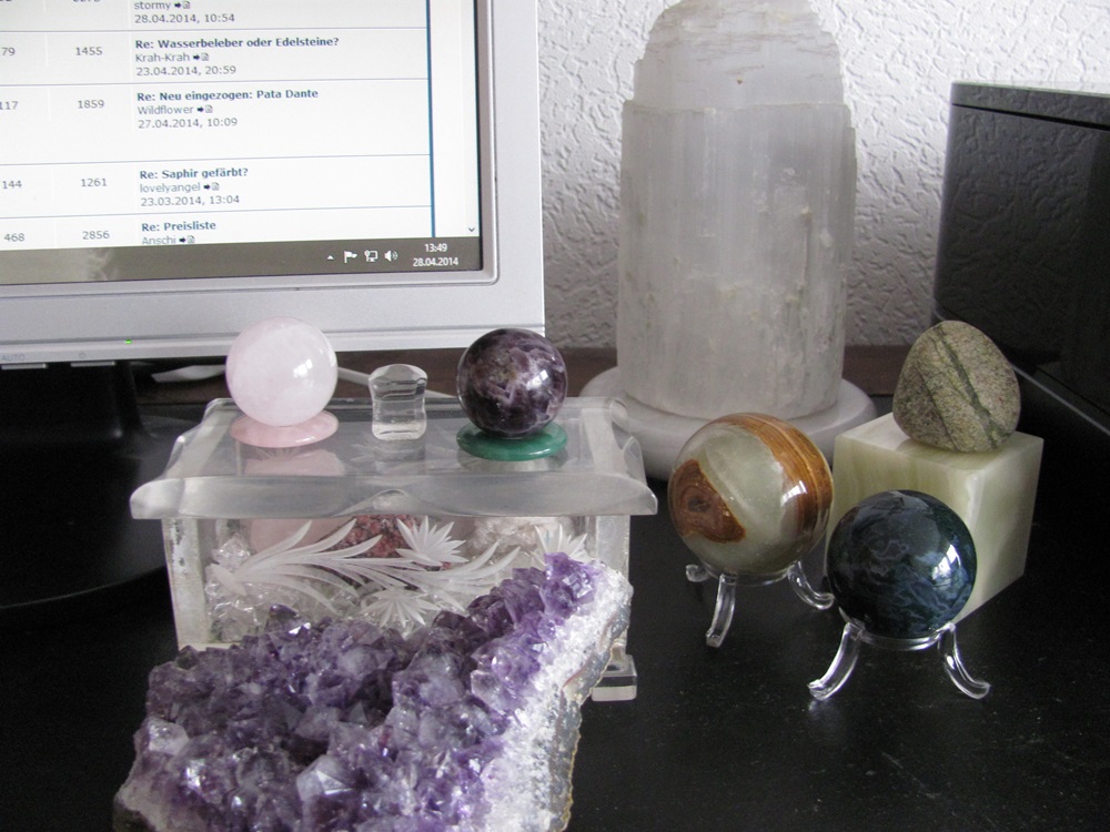 So Ihr Lieben, jetzt hat meine Amethystkugel schon seit einiger Zeit Gesellschaft. Leider habe ich ein paar kleine gesundheitliche Probleme, weshalb ich nicht so oft ins Internet kann. Aber jetzt will ich Euch doch meine neuen Schätzchen vorstellen.