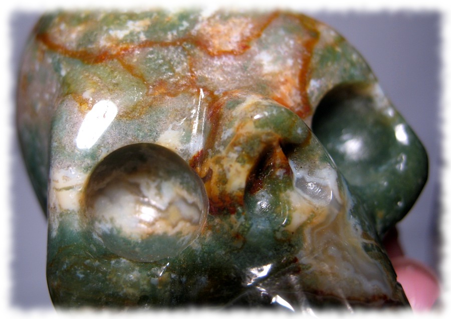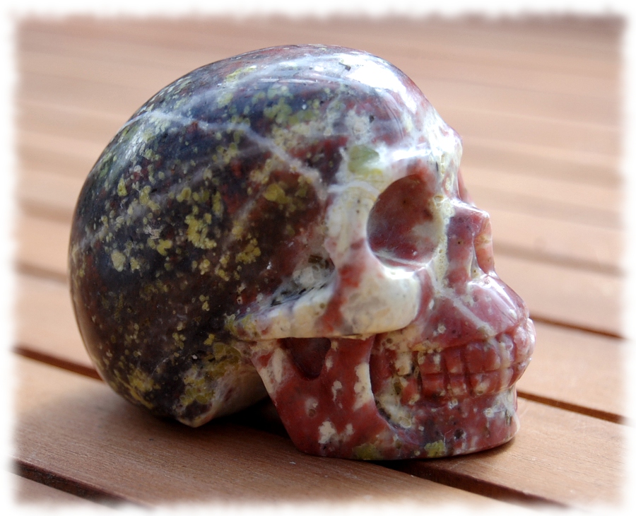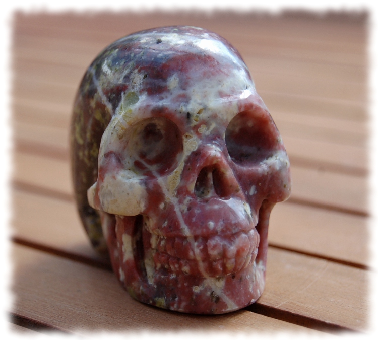 Rhodonit gehört zu meinen Lieblings-Steinen. Und so mag ich eben auch Rhodonit-Schädel besonders gerne. [{³@²