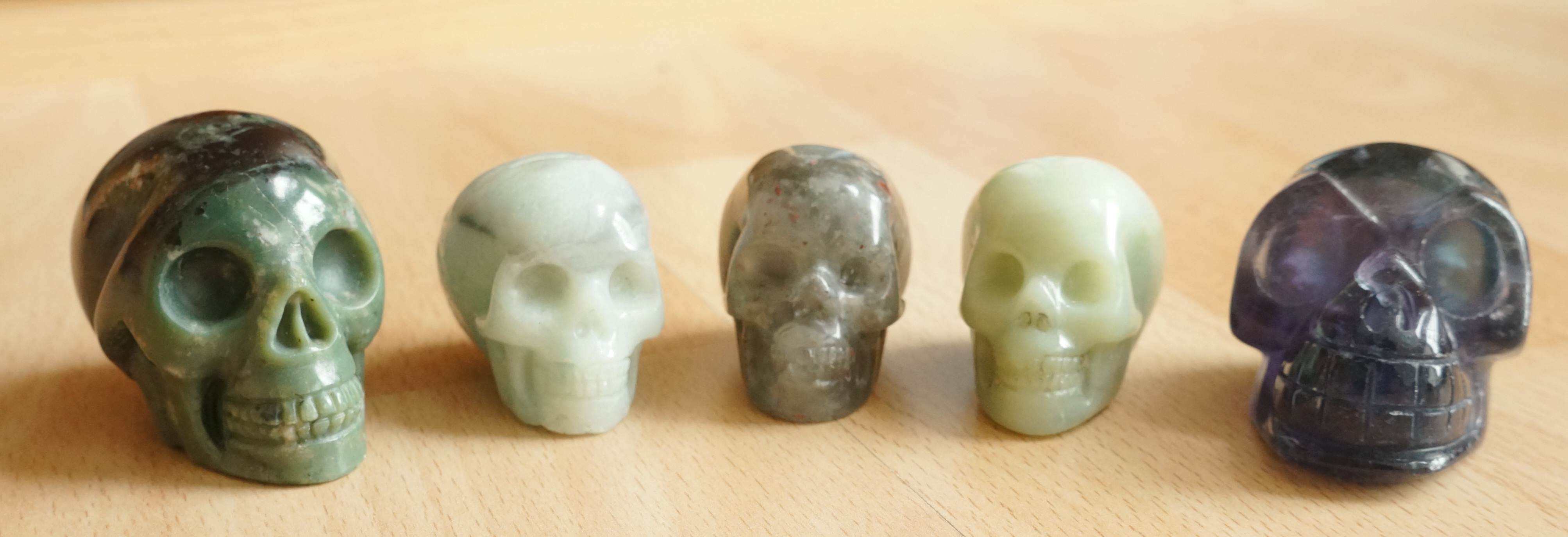 Das funktioniert genauso wie wenn man Steinewasser mit anderen Steinen ansetzt. Ich würd halt nicht zu viele verschiedene Schädel drum rum stellen.