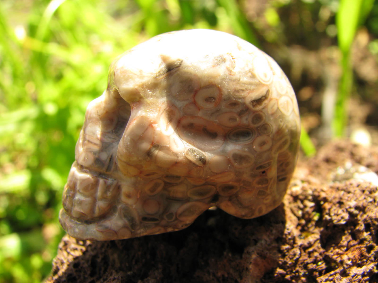 Das hier ist Pueblo, ein kleiner Bambus-Jaspis-Skulli. Auch er hat mir ganz lieb seinen Namen verraten... Weiter geht´s mit Nuri (oder Nuriel, weiß ich nich nicht sicher)... ... und einem etwas schüchternen Schädelchen, das mir seinen Namen noch nicht verraten und sich auch nicht so gern fotografieren lassen wollte...