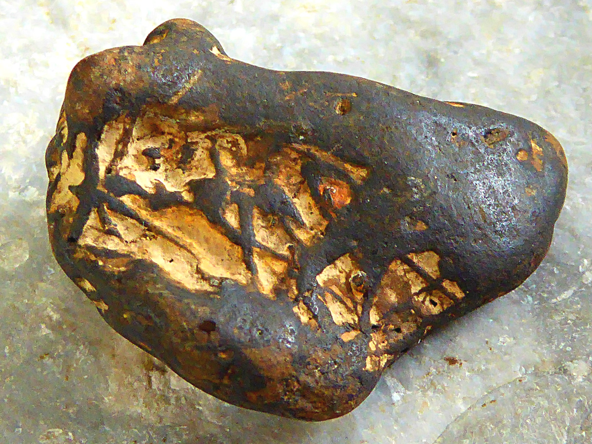 Ich würde schon sagen, dass ist Pyrit oder Markasit, der sieht oft auf Strandsteinen so kupfer-rotbraun aus.