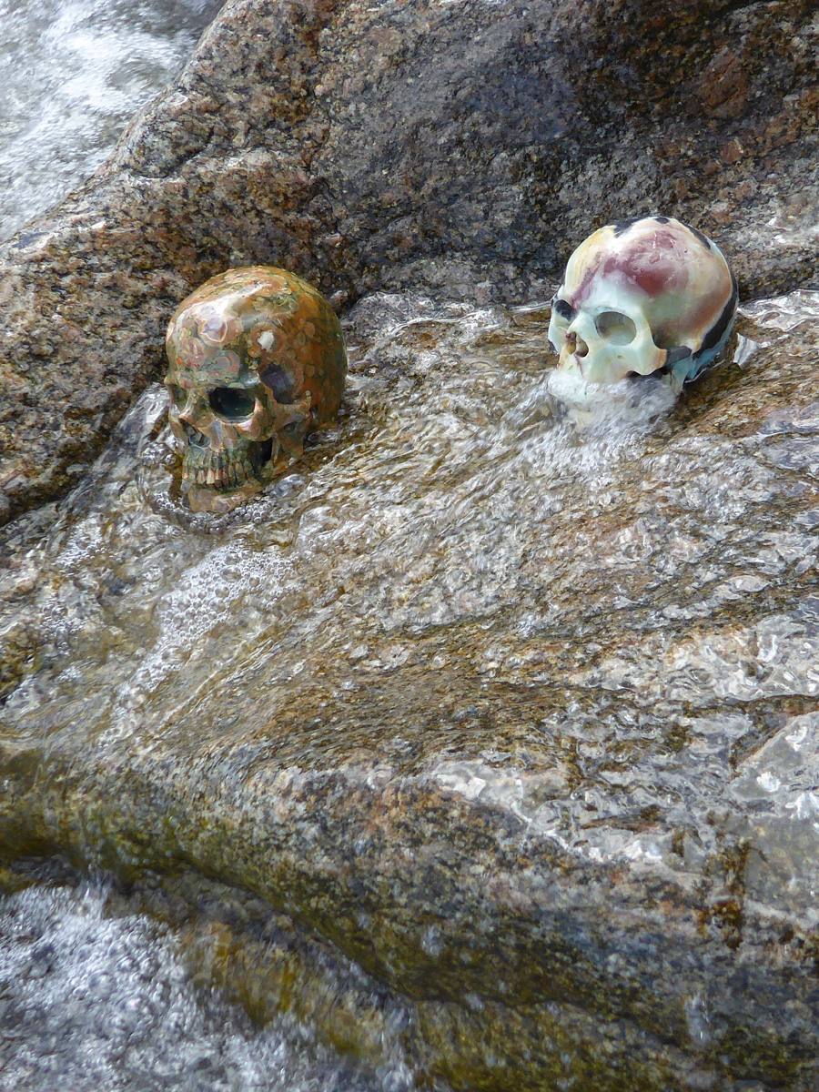 Kristall, deine skulls im Wasserfall sehen genial schön aus.