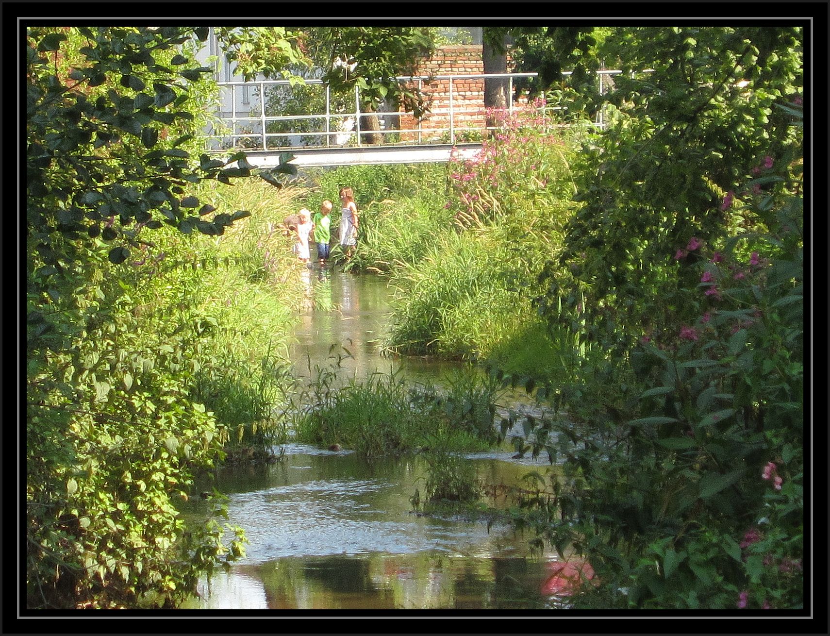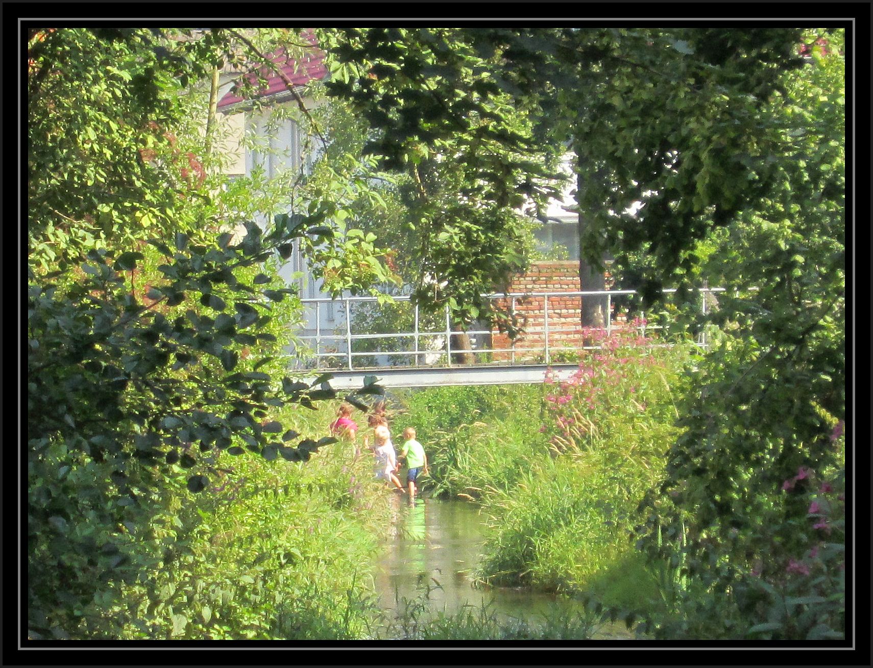 Hinten an der Brücke entdeckte ich spielende Kinder im Bach.