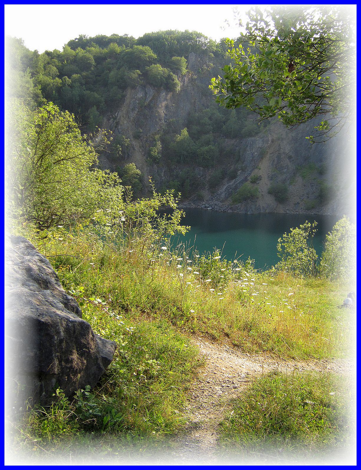 zu dem stillgelegten Steinbruch, der nun zum wunderschönen See sich entwickelt hat.