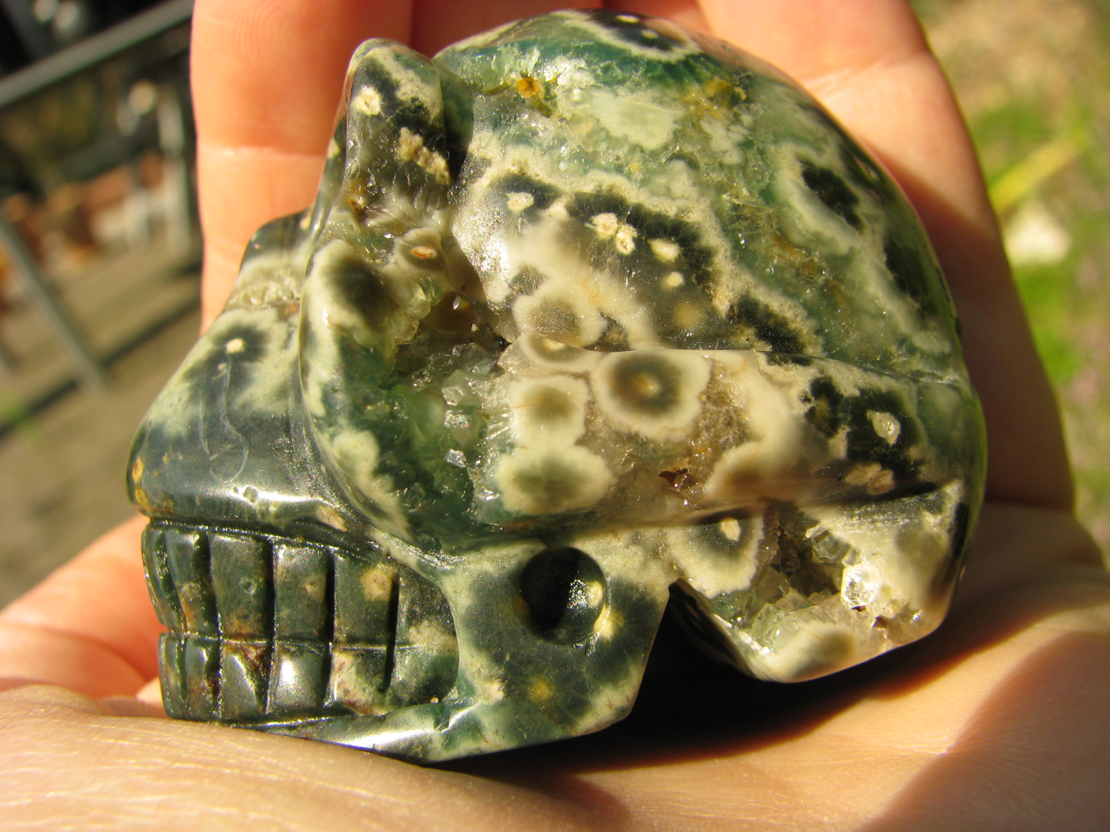 ,und jetzt hier im Thread als schöner Rhodonit Schädel, sehr schön!