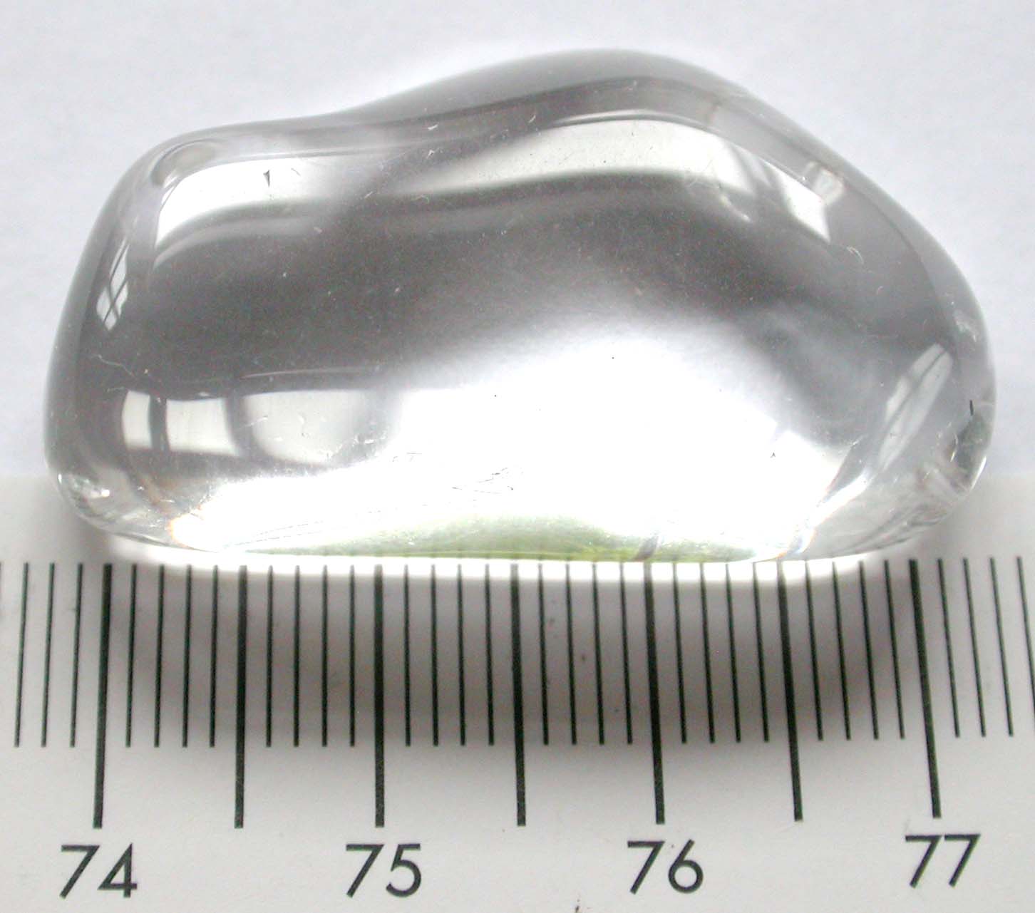 Meine Nachbarin kam mit einem getrommelten farblosen, fast augenreinem Stein zu mir und erzählte, sie hat diesen Stein im Urlaub als Bergkristall am Strand für einen Euro gekauft. Bereits in ihrem Quartier hatte sie Zweifel ob das wohl ein Bergkristall sei oder bloß einfaches Glas.