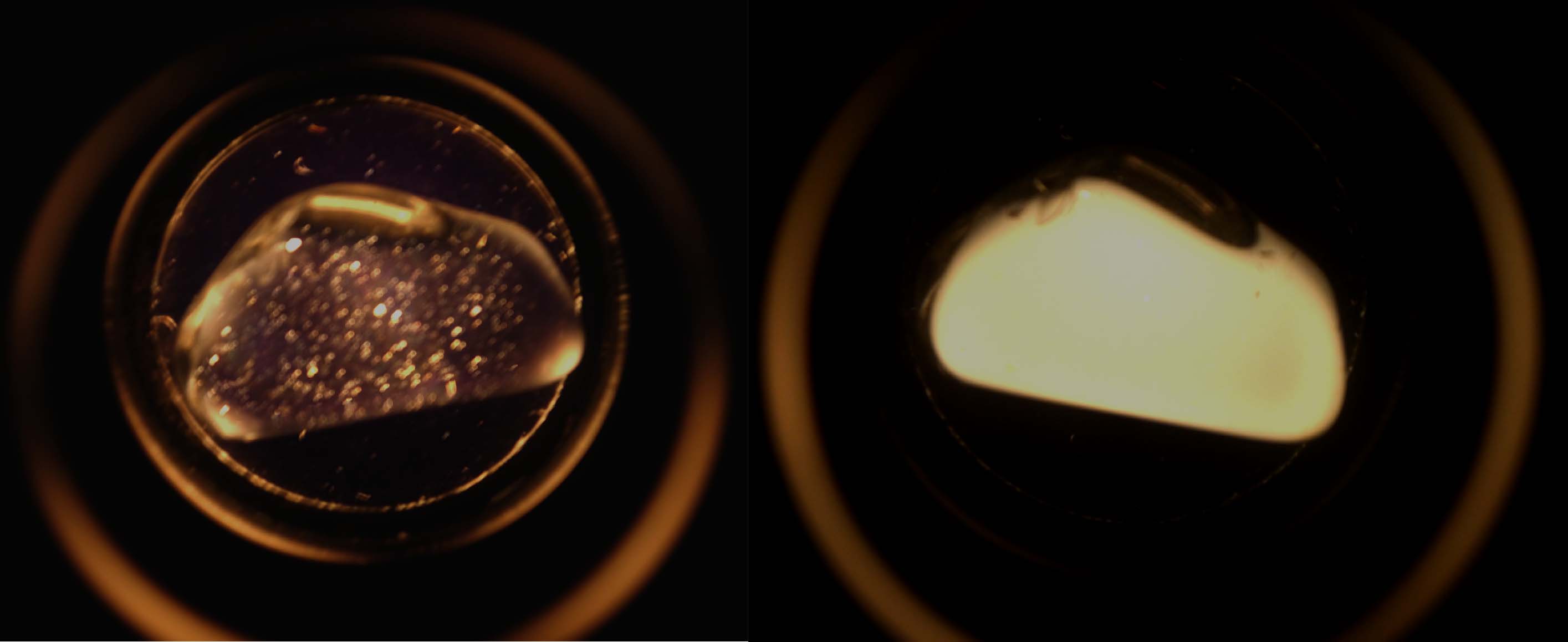 Überprüfung der Isotropie/Anisotropie - schöner könnte das Ergebnis am Polariskop gar nicht sein; der Wechsel hell - dunkel war eindeutig und somit konnte der Stein als farbloser,kristalliner Quarz eingestuft werden. Ob er natürlichen oder synthetischen Ursprungs ist, musste trotzdem offen gelassen werden.