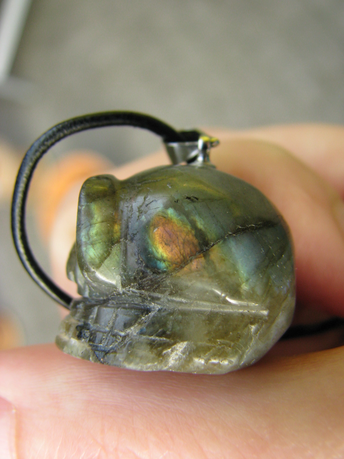 Ein toller Rhodonit Schädel ( Enya) und der zuckersüsse Anhänger aus Labradorit