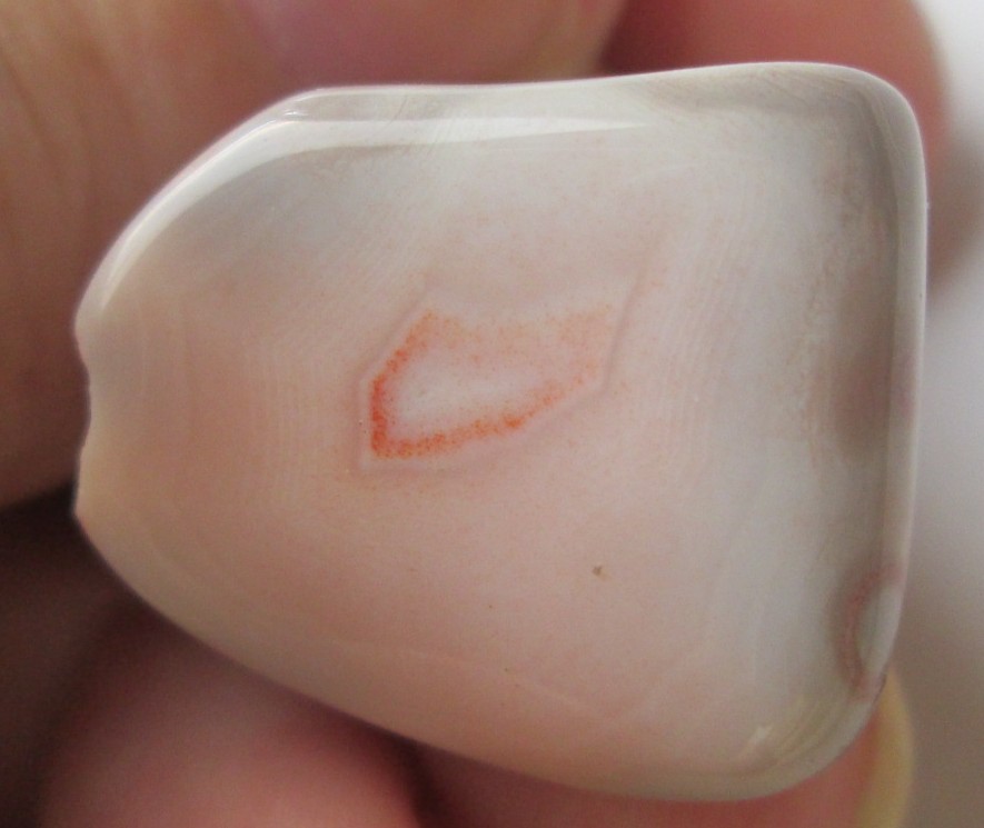 Es ist ein gebrannter Botswanaachat mit Augenmusterung, also ein Augenachat, in der Farbe dann 'Aprikosenachat' genannt. Stammt üblicherweise aus Südafrika.