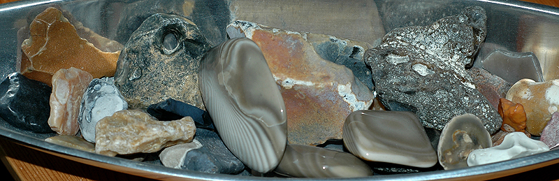 Die Trommelsteine (und ein paar kleinere Roh- und sonstige Steine) passten natürlich nicht mehr rein, deshalb sind die so untergebracht: