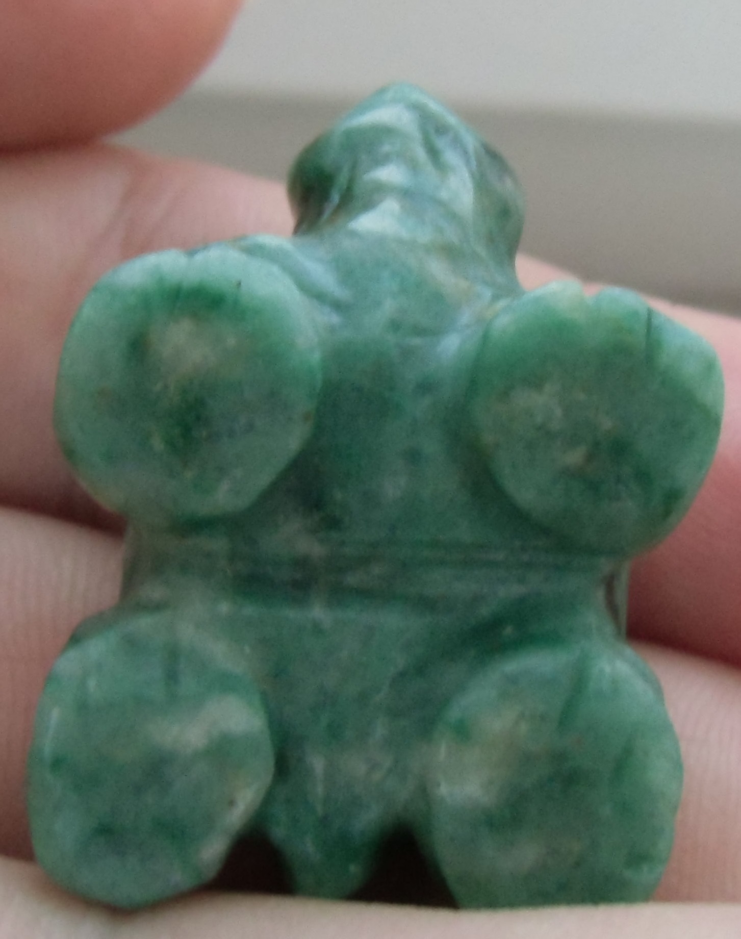 Hallo gestern war bei uns ein Wochenendmarkt und da war auch ein Stand mit Schmuckstücken das meiste war aus Holz bis auf diese Kröte ein Anhänger und ein Delfin.