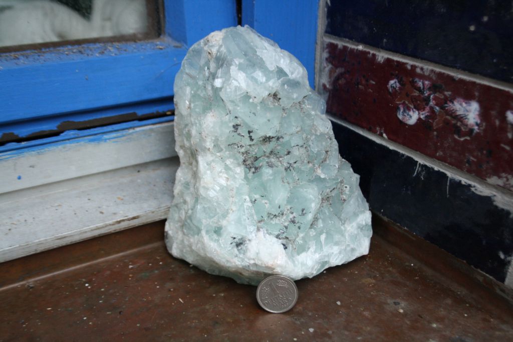 für Deine Einschätzung, ja die stimmt, Flourit, zart blau, eingebettet in Quarz.