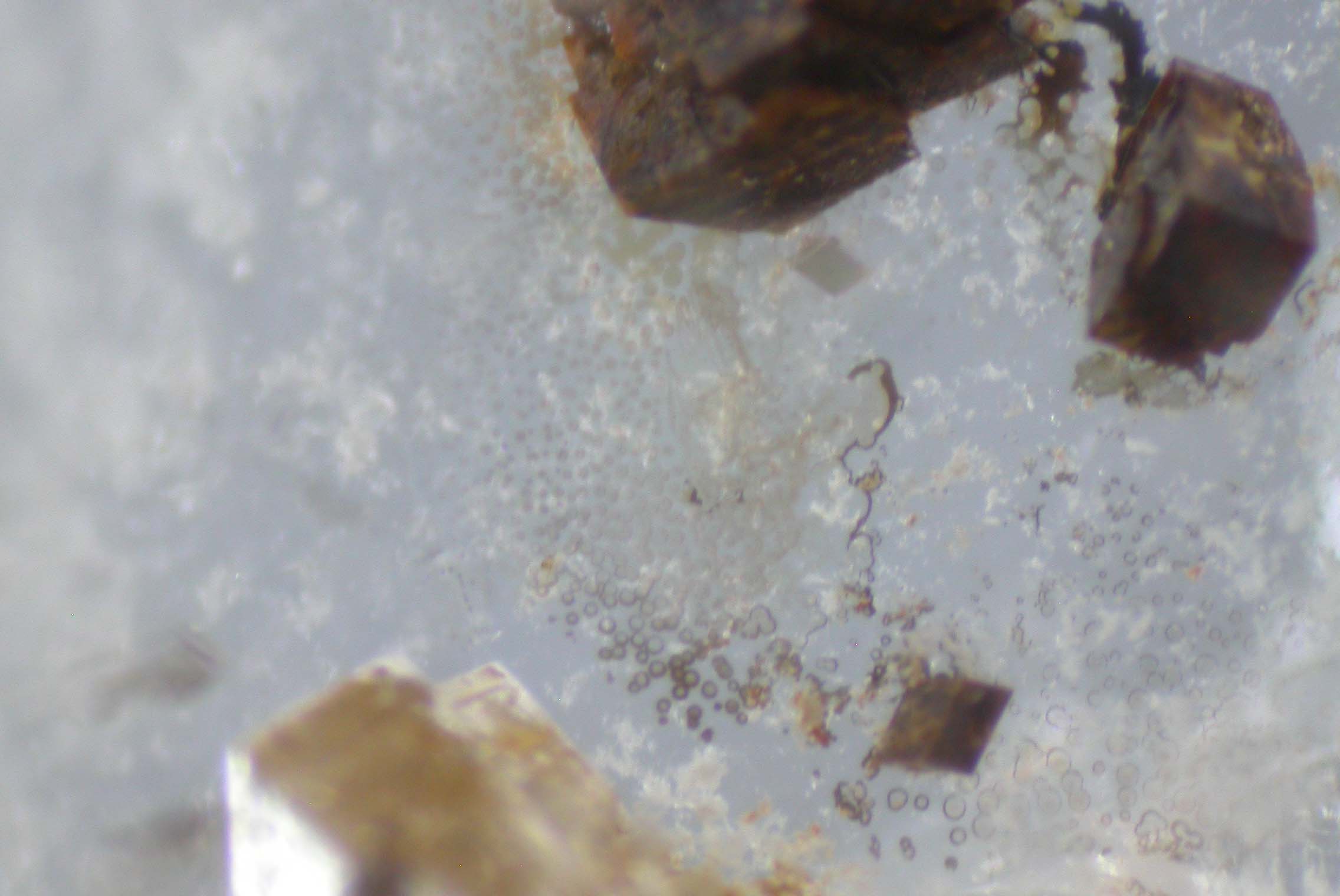 Geschenke, in Cellophan gehüllt, oder sind es bloß Calcit-Kristalle? Einer birgt eine wunderschöne Gasblase, oder ist es ein rundes Namensschildchen? Und diese dunkelbraunen Päckchen, Siderit vielleicht? Wildflower hat/hatte auch schon einmal einen Ähnlichen!