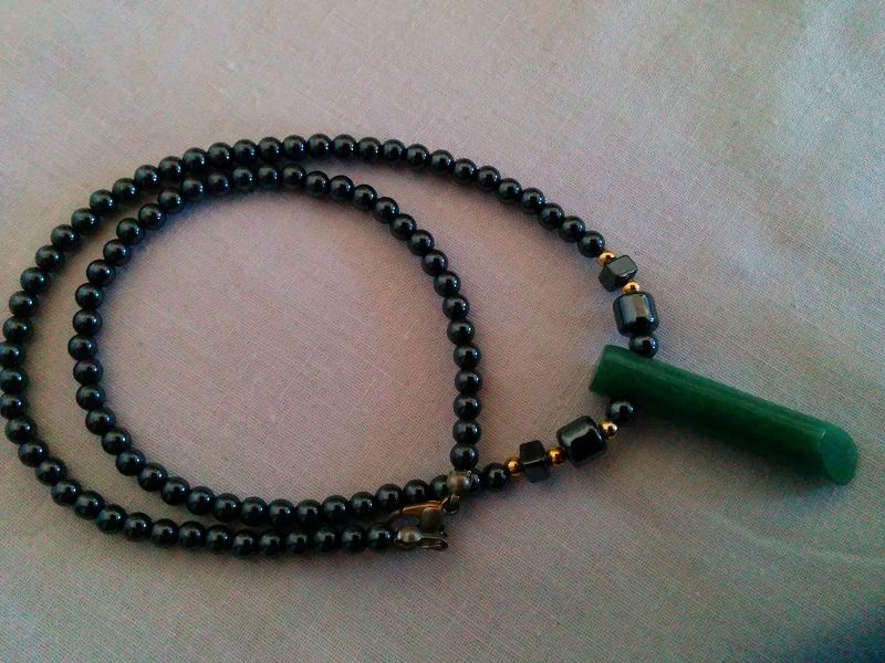 Seit einigen Tagen trage ich eine Kette aus Hämatit und grünem Aventurin, die mein Vater mir mal geschenkt hat. Auch wenn meine Vorgesetzte letztens fragte, ob ich eine Abflusskette trage, liebe ich diese Kette (immerhin hat mein Vater sich Gedanken gemacht).