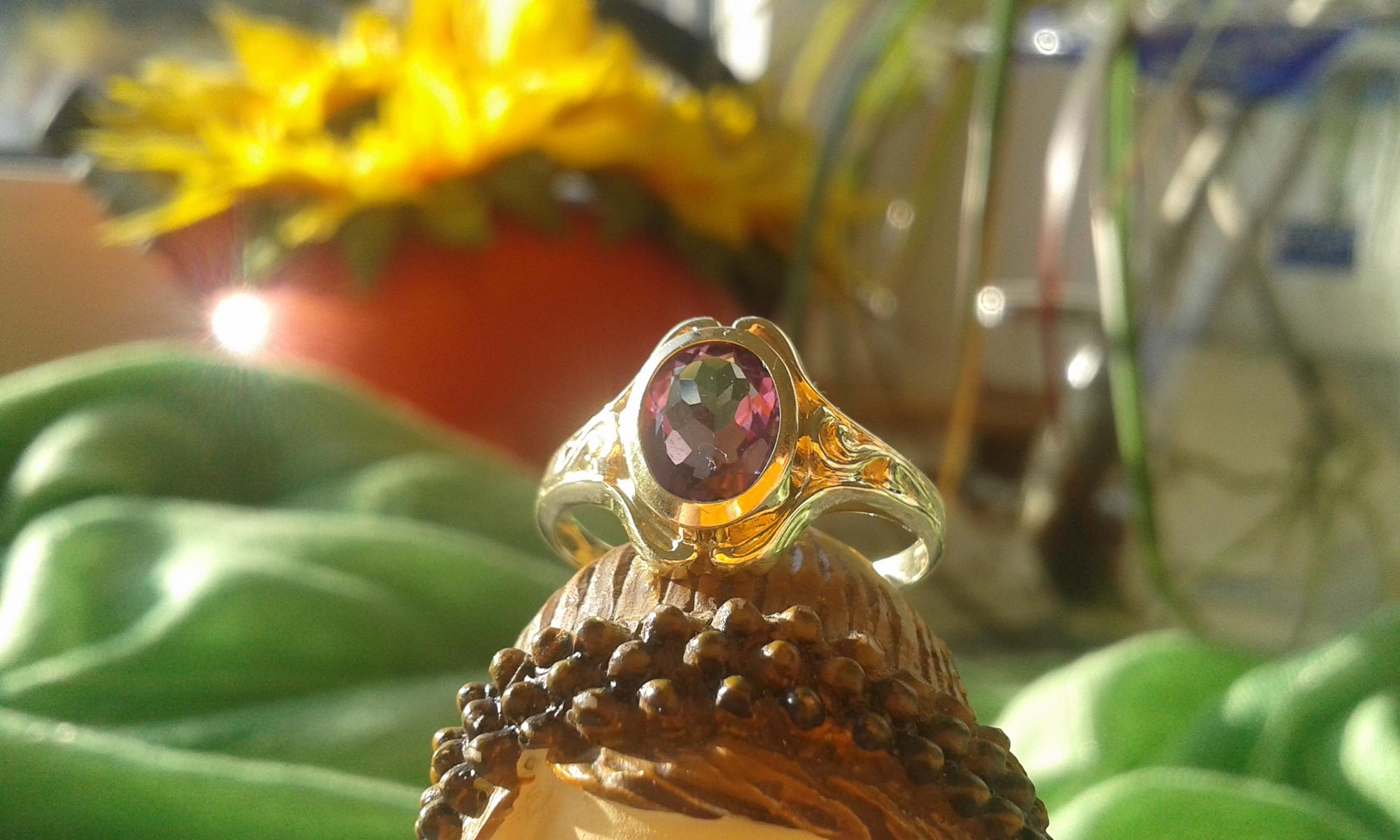 und vor 3 Wochen zog dieser Ring mit einem künstlichen aber nicht minder schönem dunkelviolettem Zirkonia