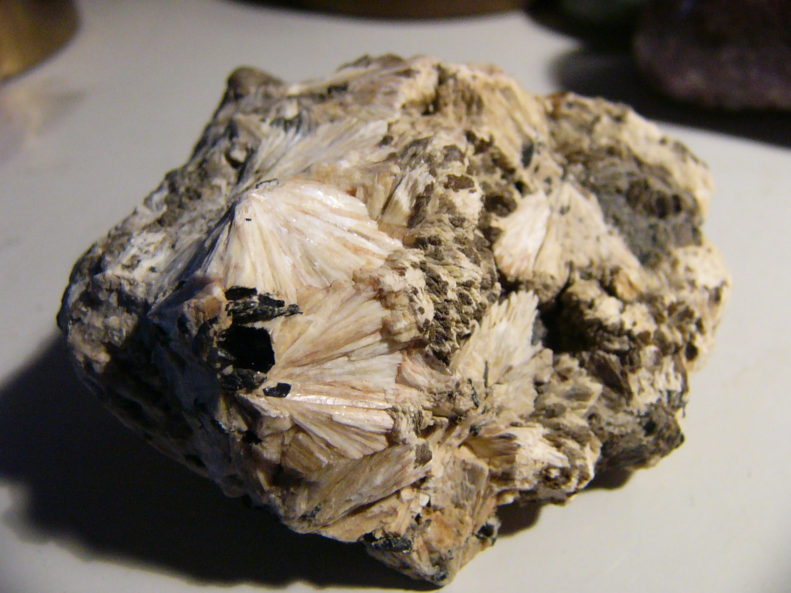 Erinnert mich an Baryt (schau mal bei Test-Steine nach da habe ich einen abgelichtet das rosa Tortenstück).
