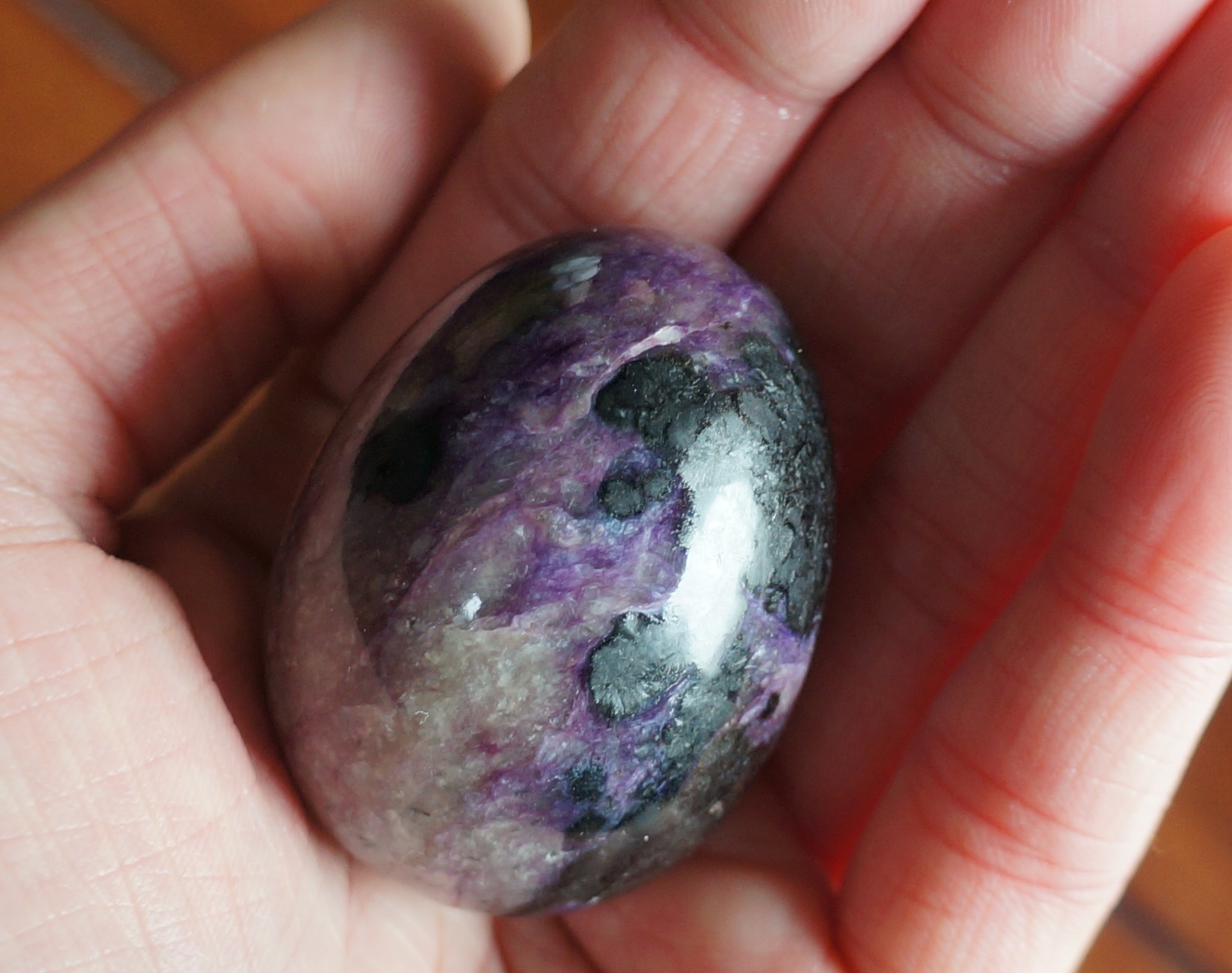 Diese Art Schmuckschatullen mit Edelsteinen sind ja typisch für Russland,die machen ja ganz viel mit Charoit,auch riesige Vasen etc.