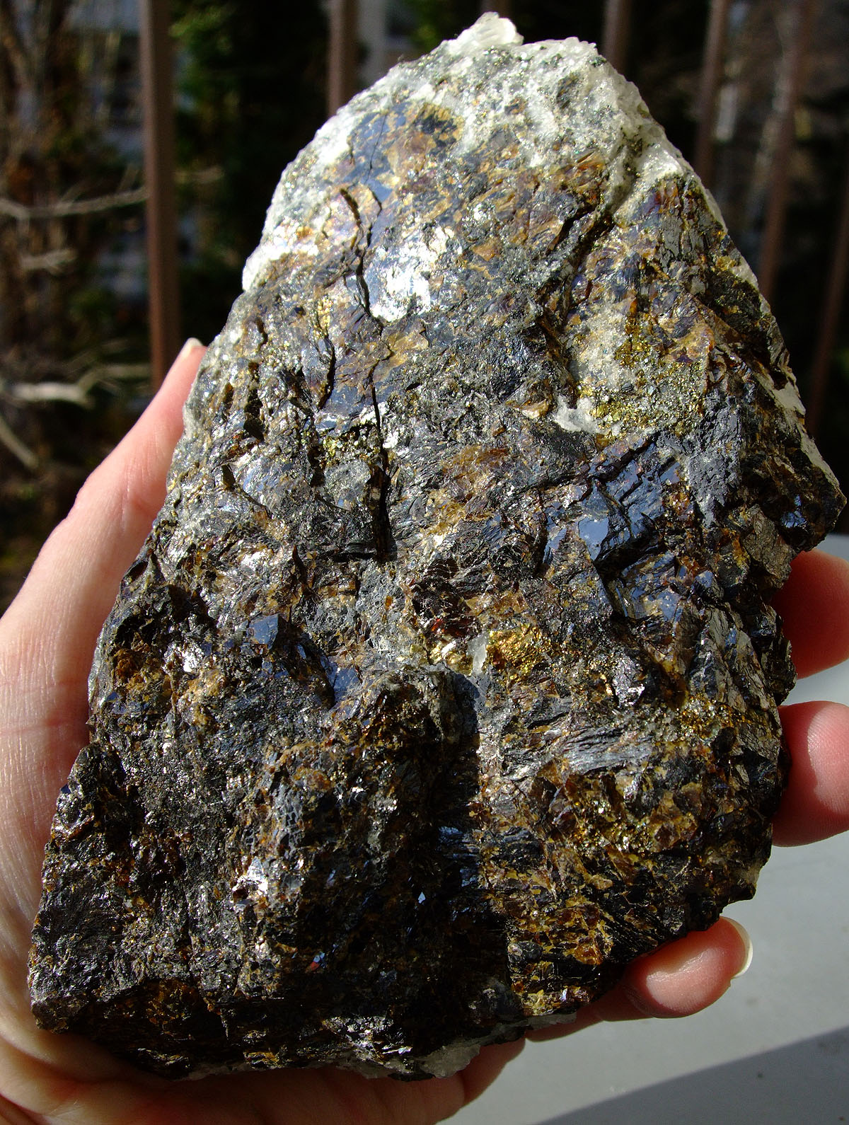 Und die hier hat wohl Pyrit dabei - und hat jemand eine Idee, was die lila Verfärbungen sein könnten?
