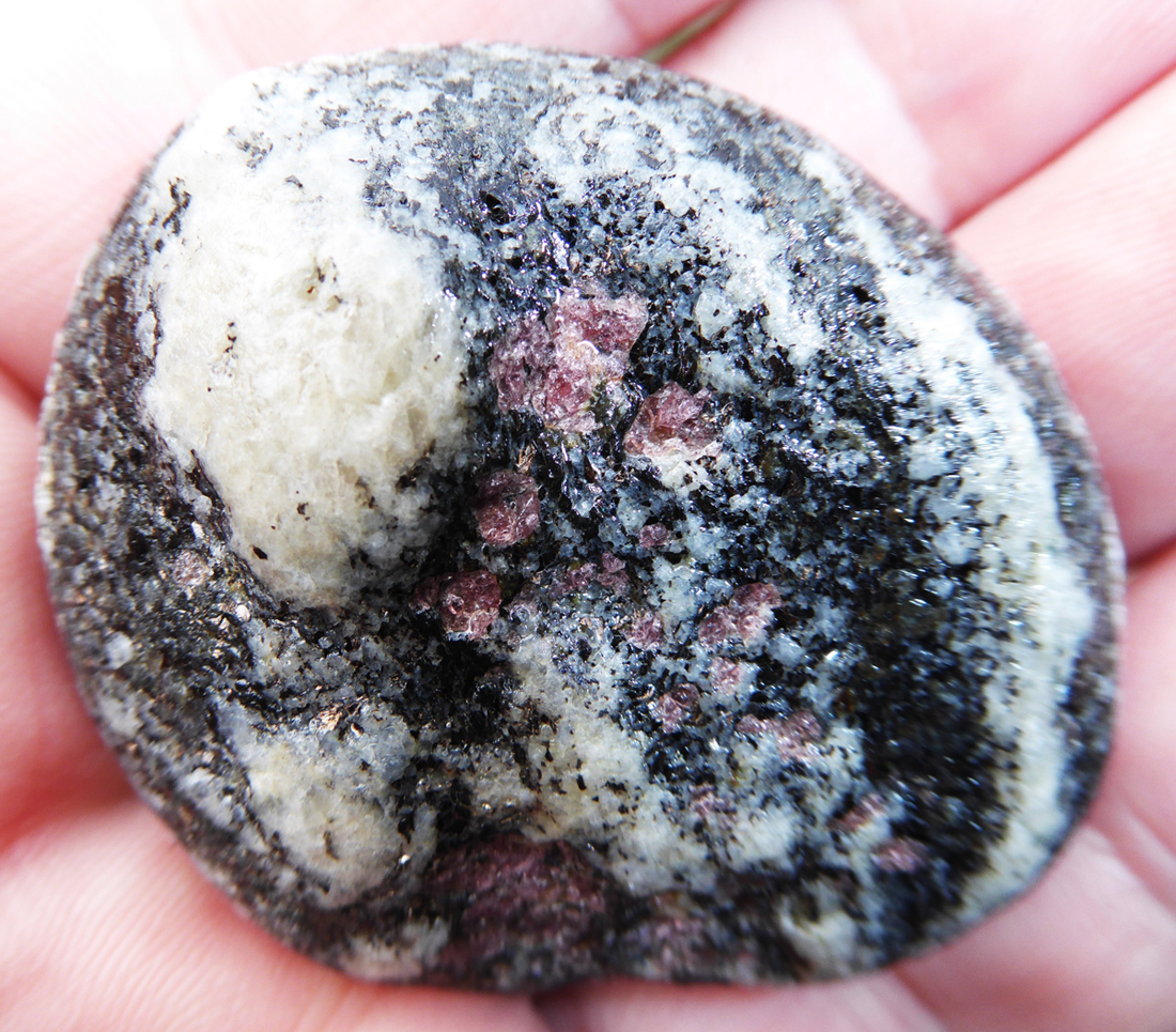 dies Stück gestern in aufgeschütteten Steinen am Weg gefunden. Rohschliff nass in der Sonne: