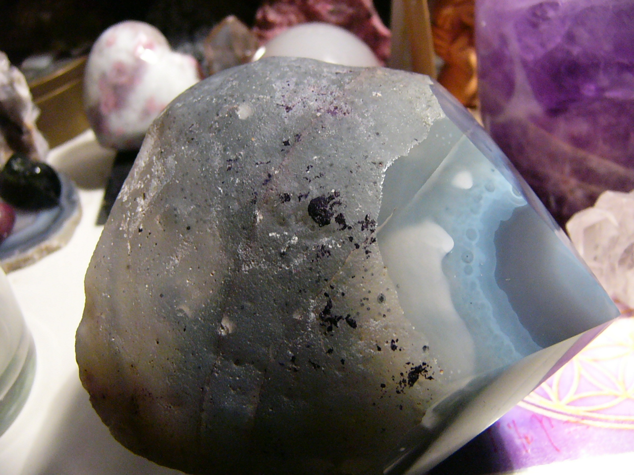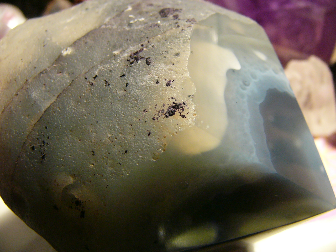 Ich denke das es sich um blau gebänderten Chalcedon handelt