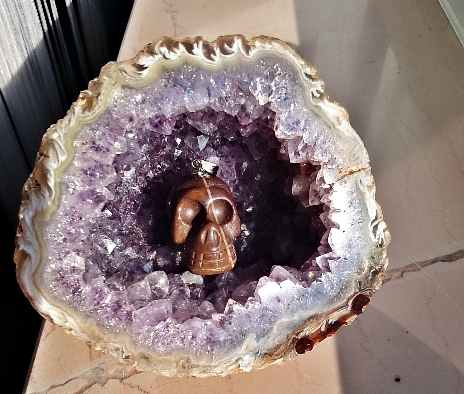 Ja ich höre da eigentlich immer auf die Schädel, wie sie aufgestellt werden möchten. Da kommen die unterschiedlichsten Formationen dabei raus, auch mit anderen Kristallen zusammen häufig. Jetzt passen sie leider nicht mehr auf den Tisch gg, aber bei schönem Wetter stelle ich sie auf dem Medizinrad draussen auf bei besonderen Gelegenheiten.