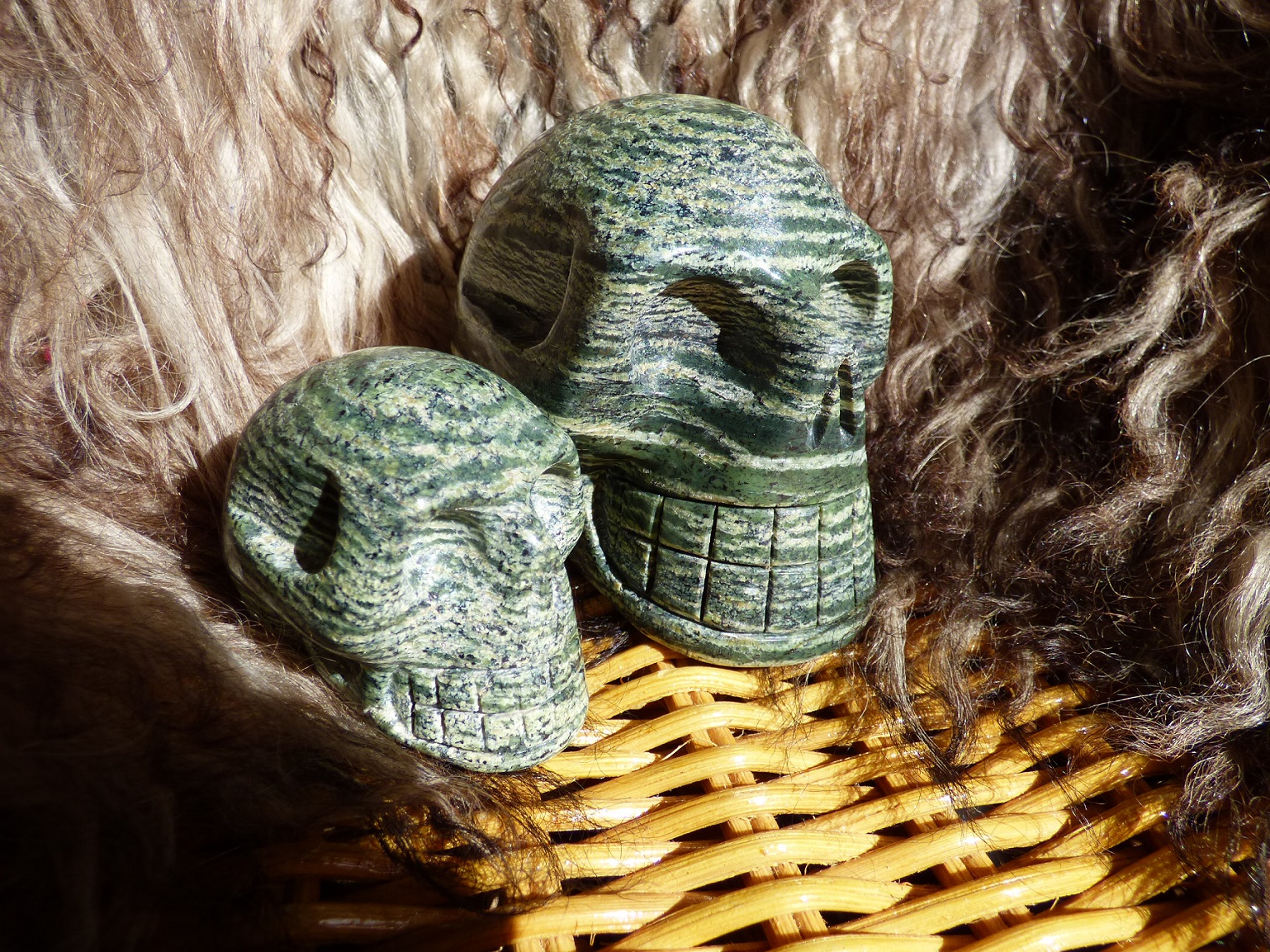 Ja ich höre da eigentlich immer auf die Schädel, wie sie aufgestellt werden möchten. Da kommen die unterschiedlichsten Formationen dabei raus, auch mit anderen Kristallen zusammen häufig. Jetzt passen sie leider nicht mehr auf den Tisch gg, aber bei schönem Wetter stelle ich sie auf dem Medizinrad draussen auf bei besonderen Gelegenheiten.