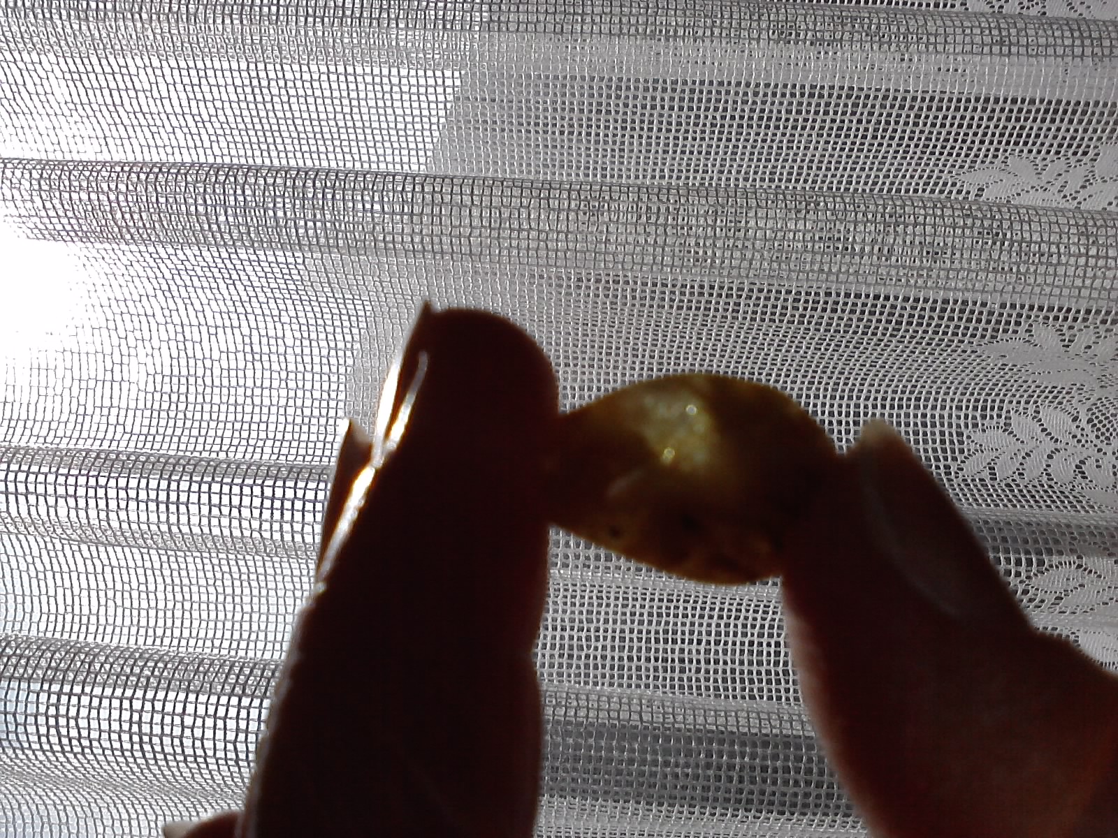 Der Stein ist gelblich und teilweise transparent und wieder mal unscharf. Mist!