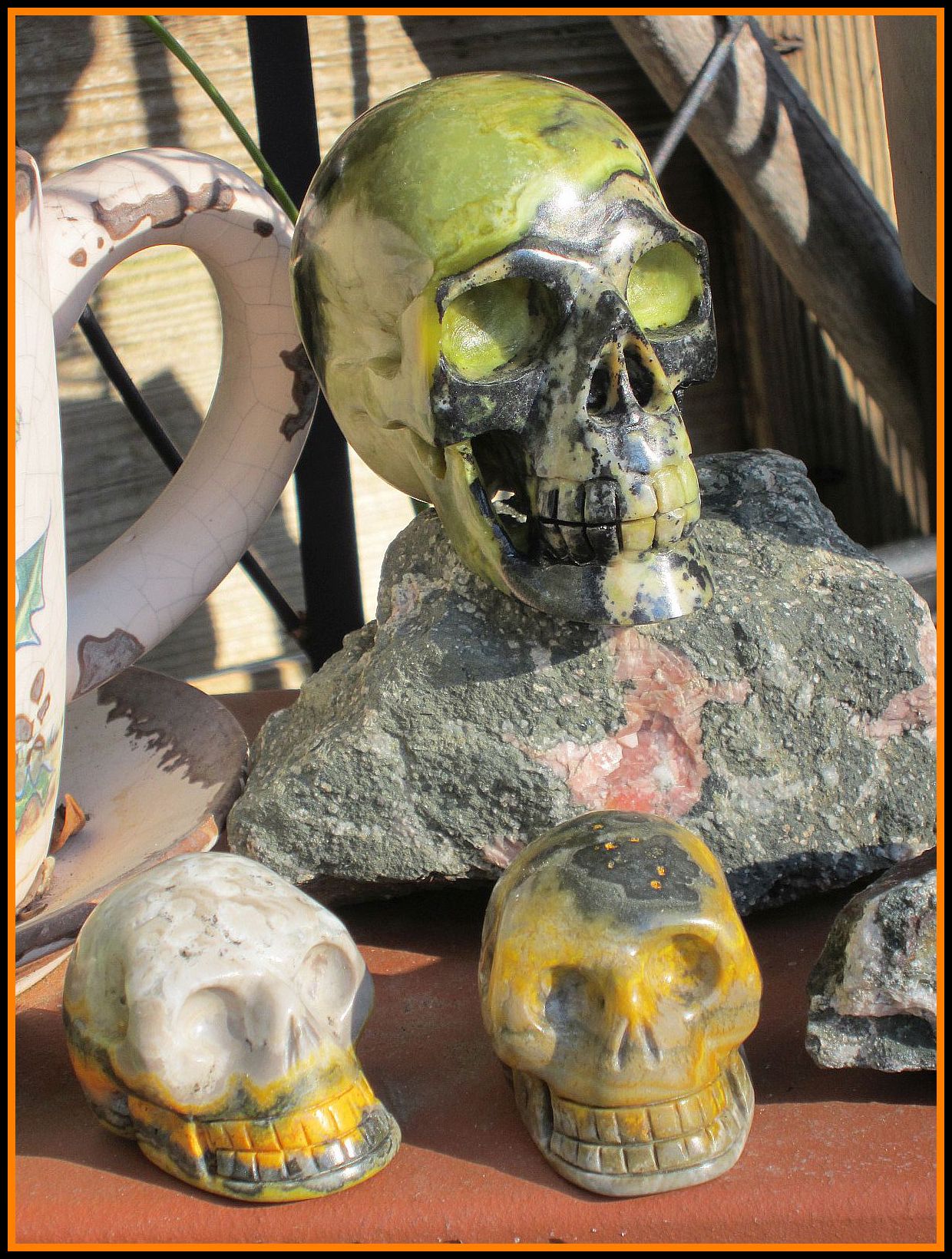 Ich bin immer ein bisserl neidisch, wenn ich sehe, wie hübsch es eure Schädelchen haben, und wie fein sie sich in der Natur machen. Meine sitzen brav in zwei Reihen auf meinem Sekretär und schauen mich immer ganz erwartungsvoll an, als wollten sie sagen: "Wir wollen auch mal raus..." ;) :oops: