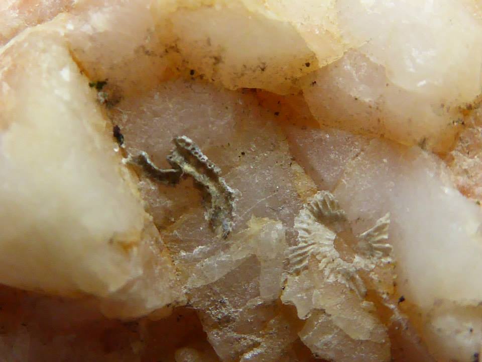 Hier noch einer, den ich mitnahm weil ich die Farben und rundgeschliffenen einzelnen Kristalle nett fand, erst jetzt gesehen dass er Spuren von Korallen hat