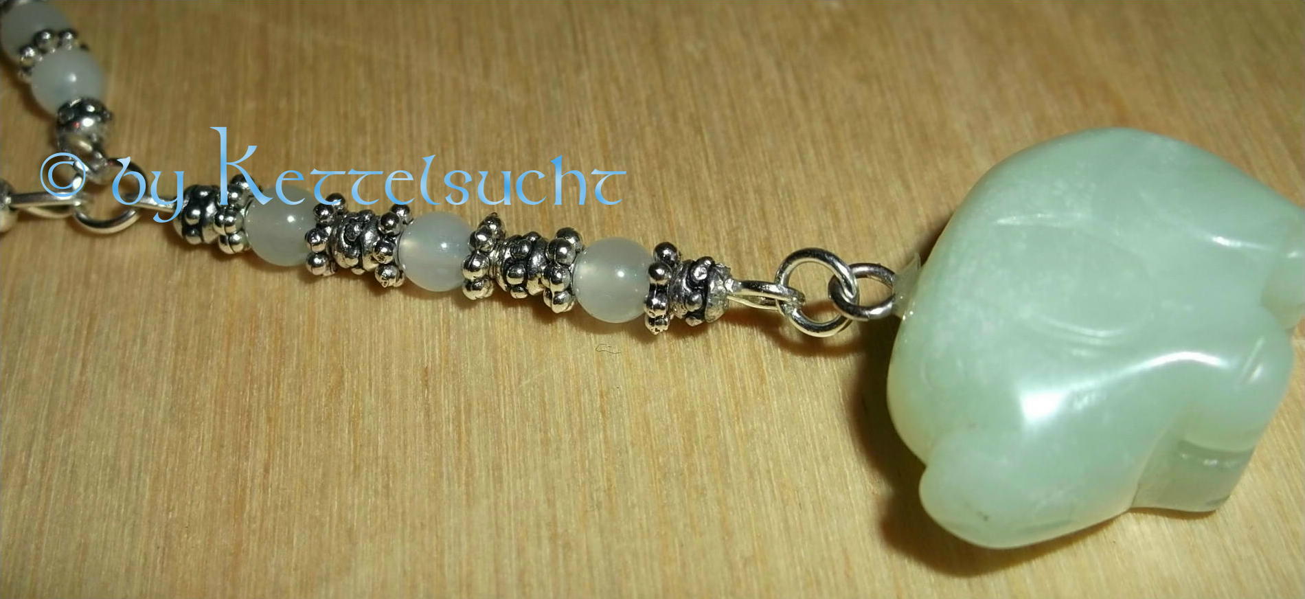 Auf der anderen Seite der Kette wird das 12cm Stück zur Schlaufe gelegt, durch die der Stein locker durchgehen sollte.