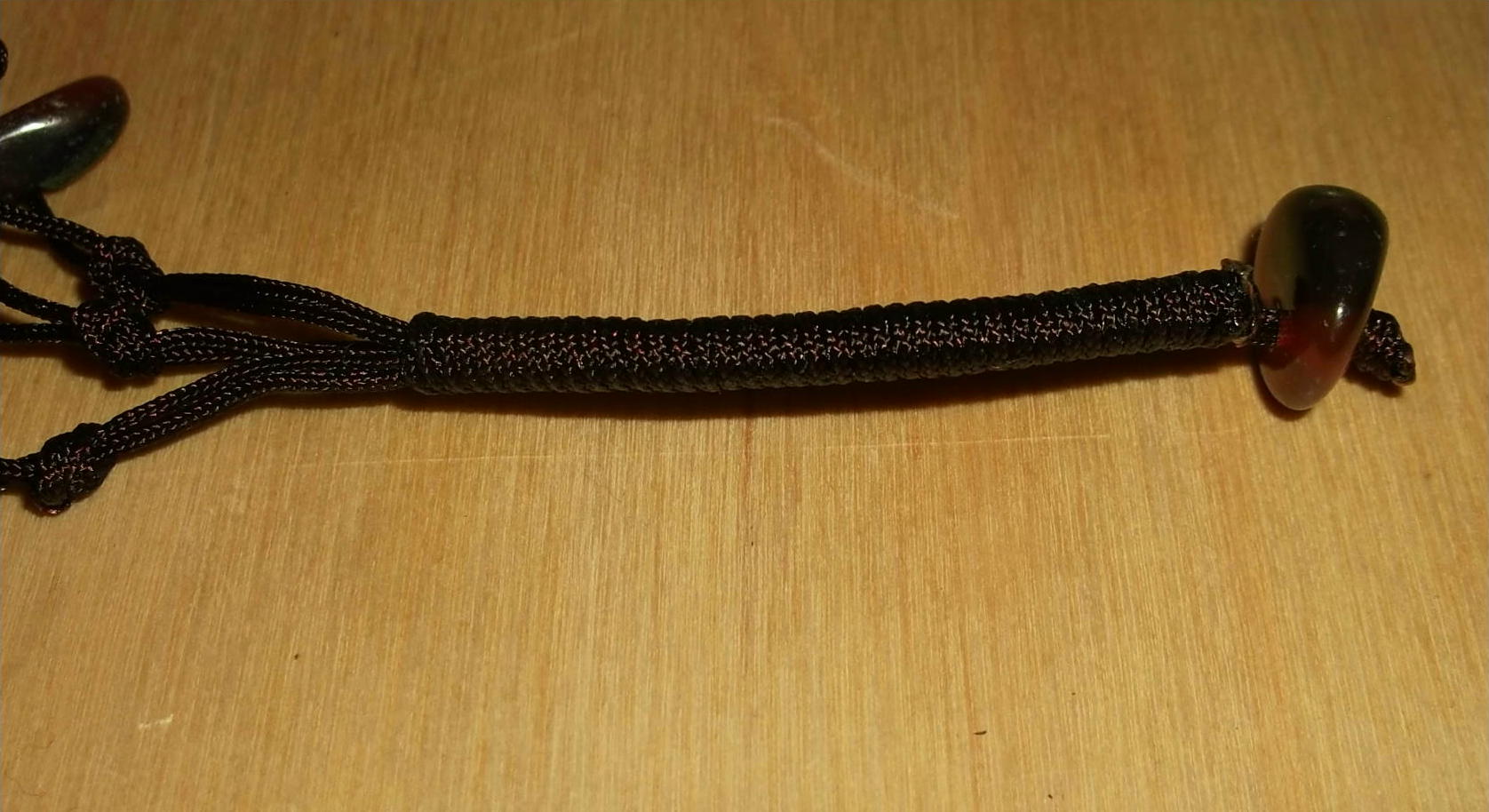 auf einem der 15´2cm Stücken wird ein Stein aufgefädelt und festgeknotet