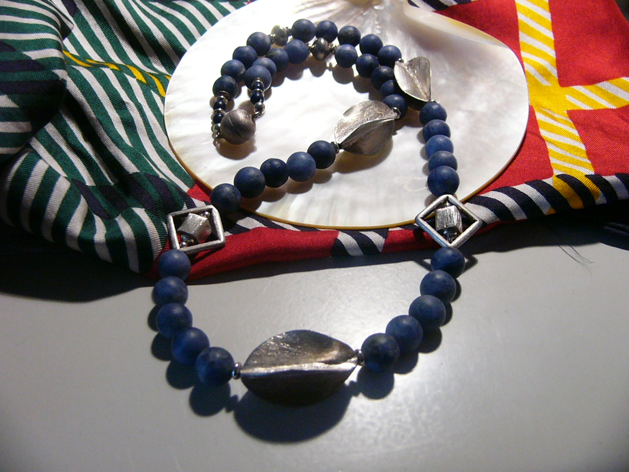 Das Material hatte ich noch nun fertig matte Lapislazuli Perlen mit Silber