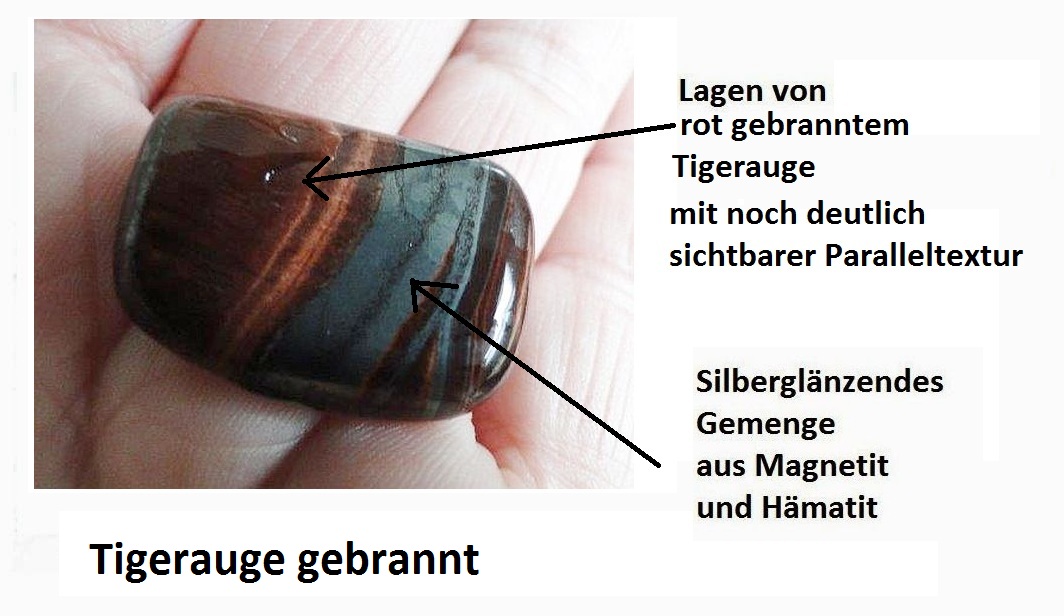 All die als Ochsenauge, Stierauge, Katzenauge rot, Tigerauge rot etc. im Handel angebotenen Steine sind rot gebrannt worden.
